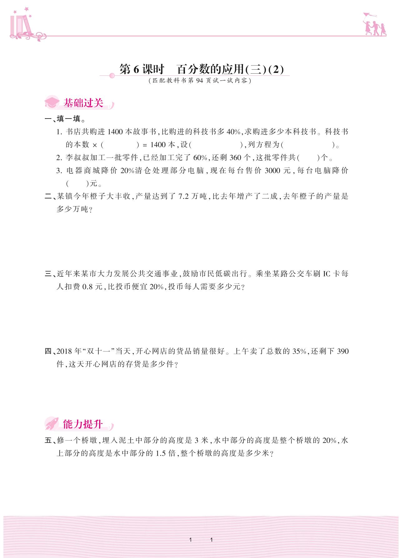 2020上册六年级数学北师版 七 百分数的应用——第6课时 百分数的应用(三)(2)