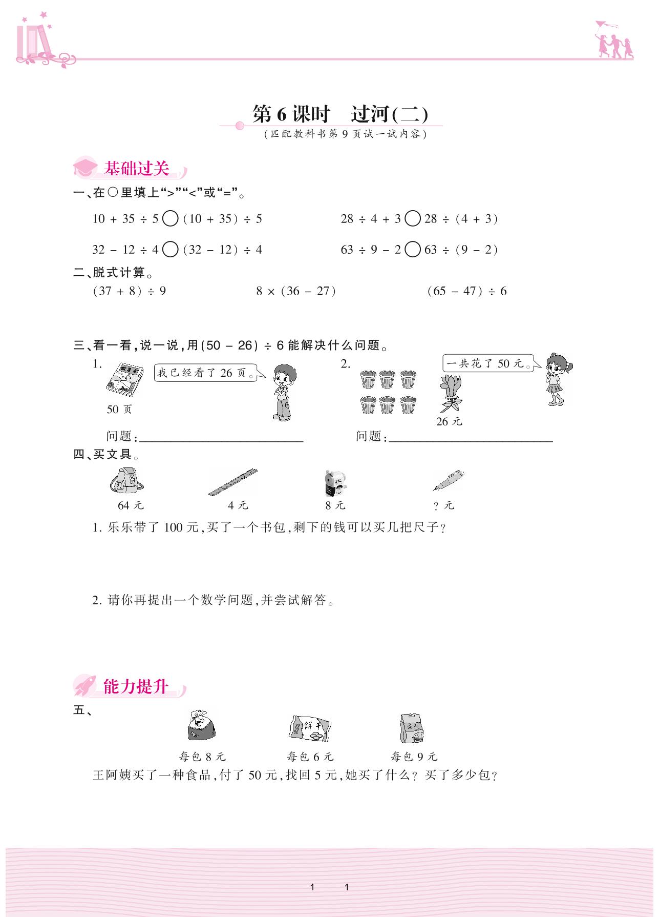 2020上册三年级数学北师版 一 混合运算——第6课时 过河(二)