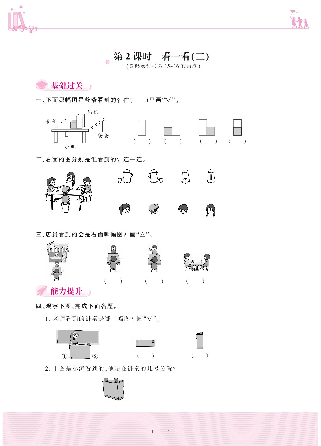 2020上册三年级数学北师版 二 观察物体——第2课时 看一看(二)