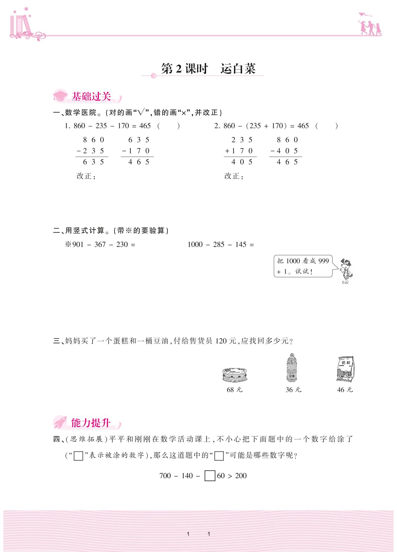 2020上册三年级数学北师版 三 加与减——第2课时 运白菜