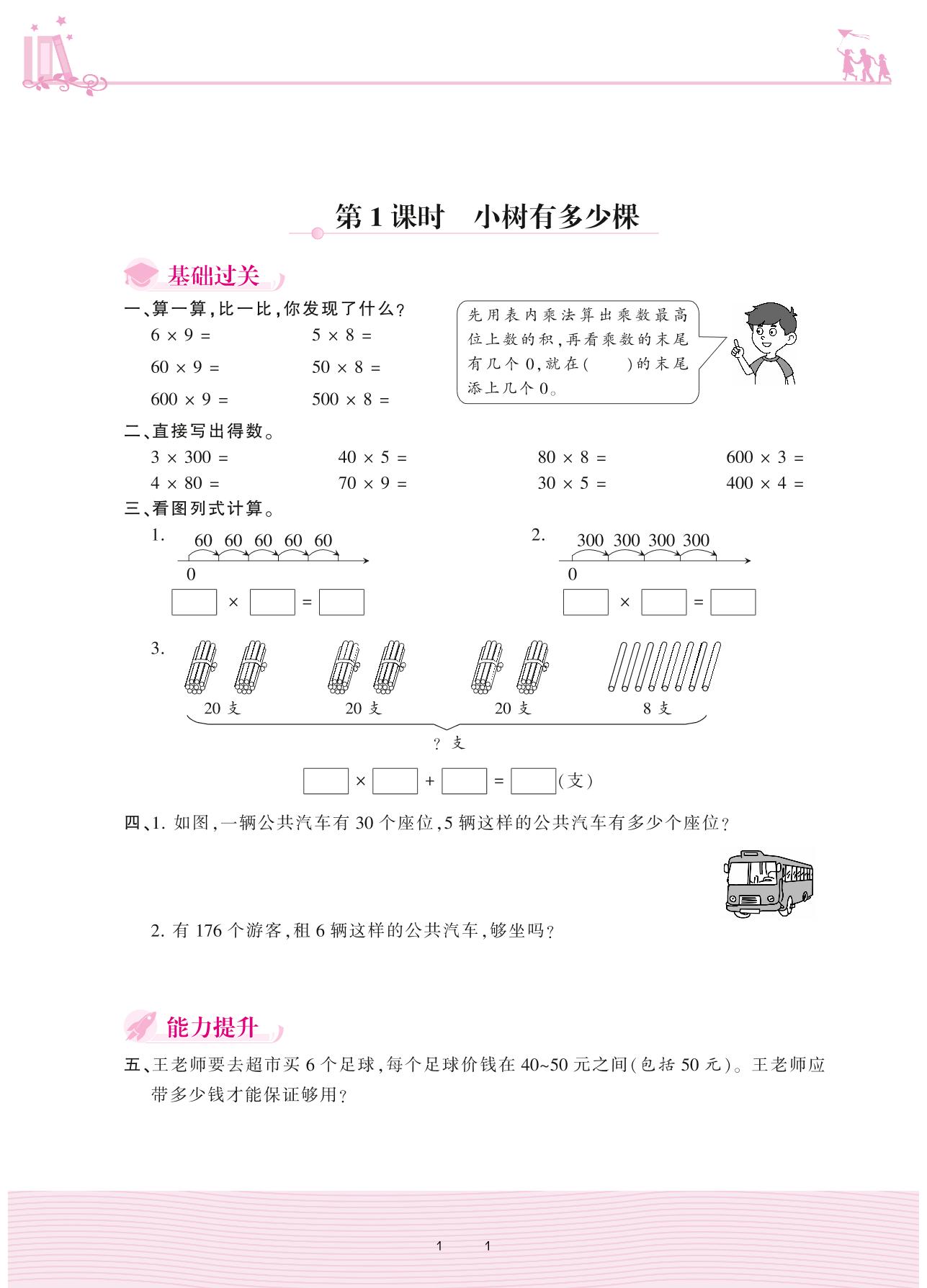 2020上册三年级数学北师版 四 乘与除——第1课时 小树有多少棵