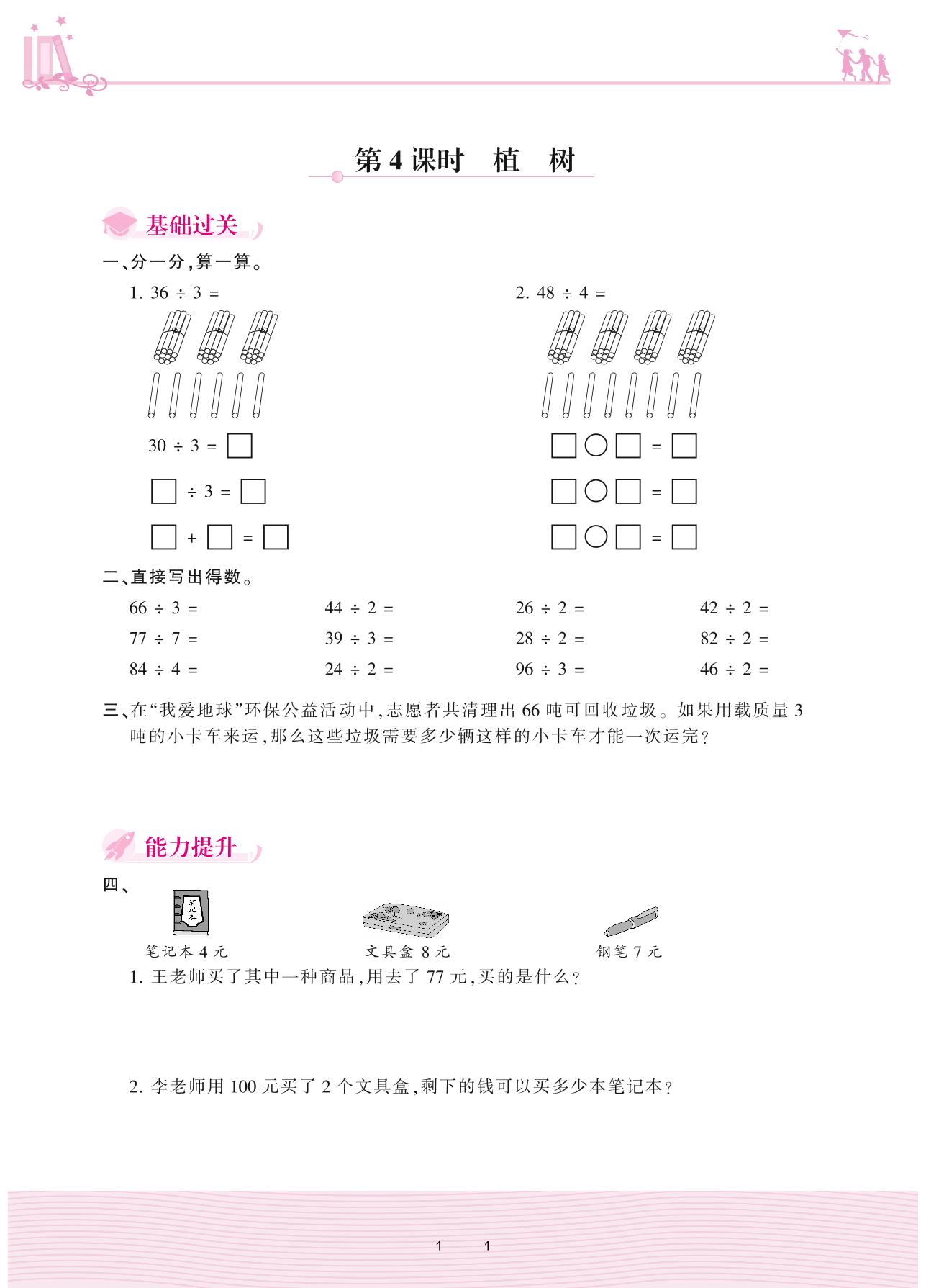 2020上册三年级数学北师版 四 乘与除——第4课时 植树