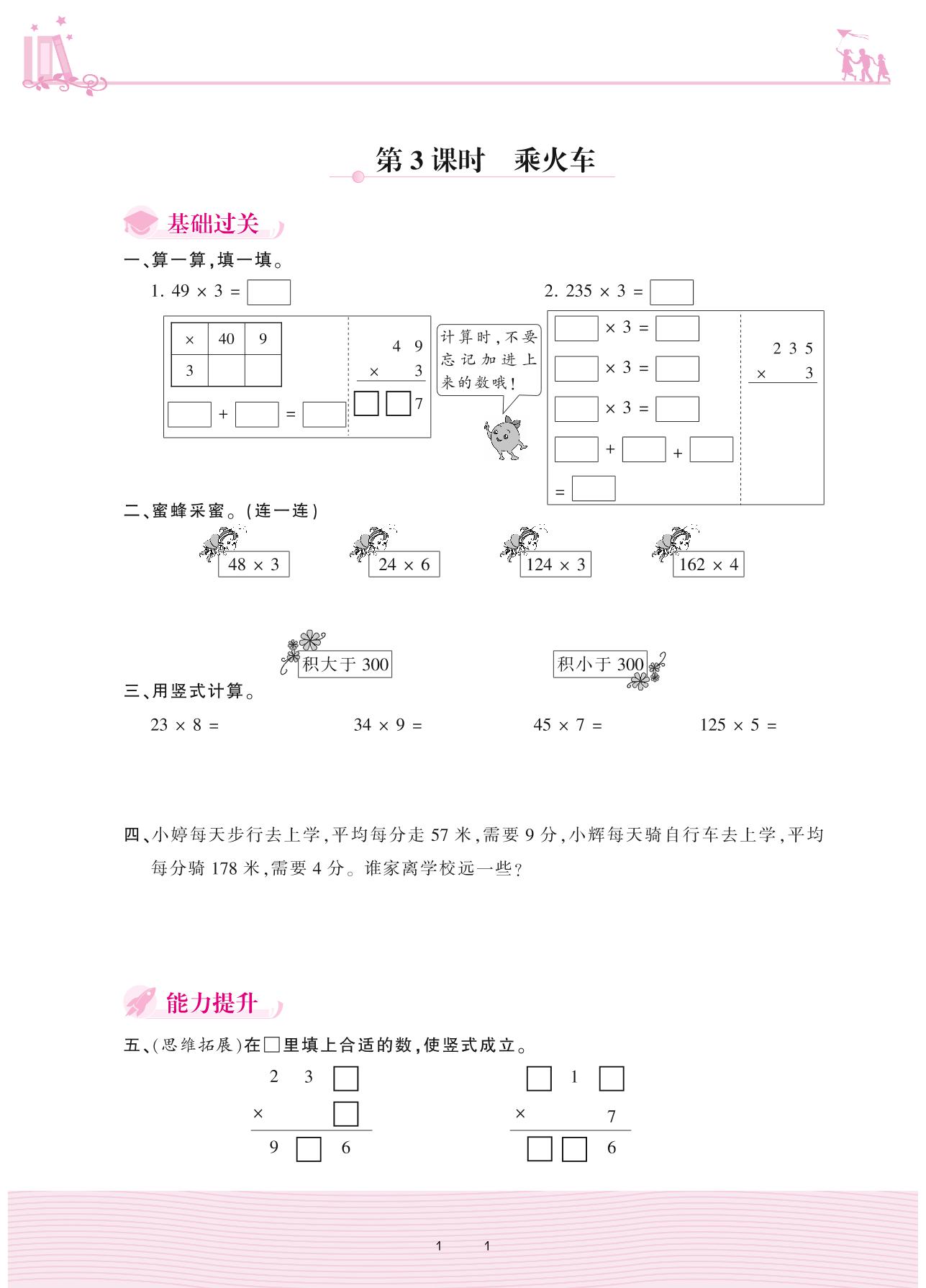 2020上册三年级数学北师版 六 乘法——第3课时 乘火车