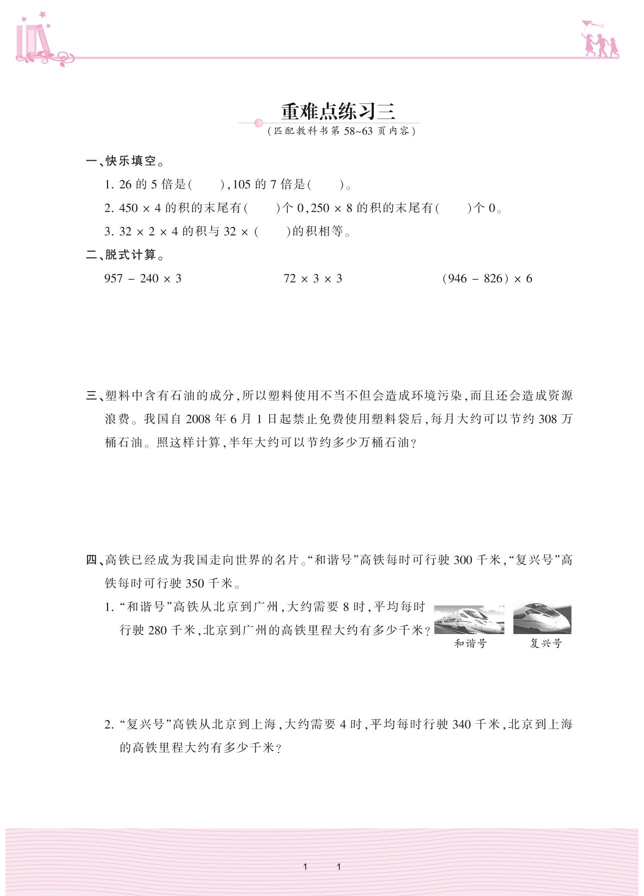 2020上册三年级数学北师版 六 乘法——重难点练习三