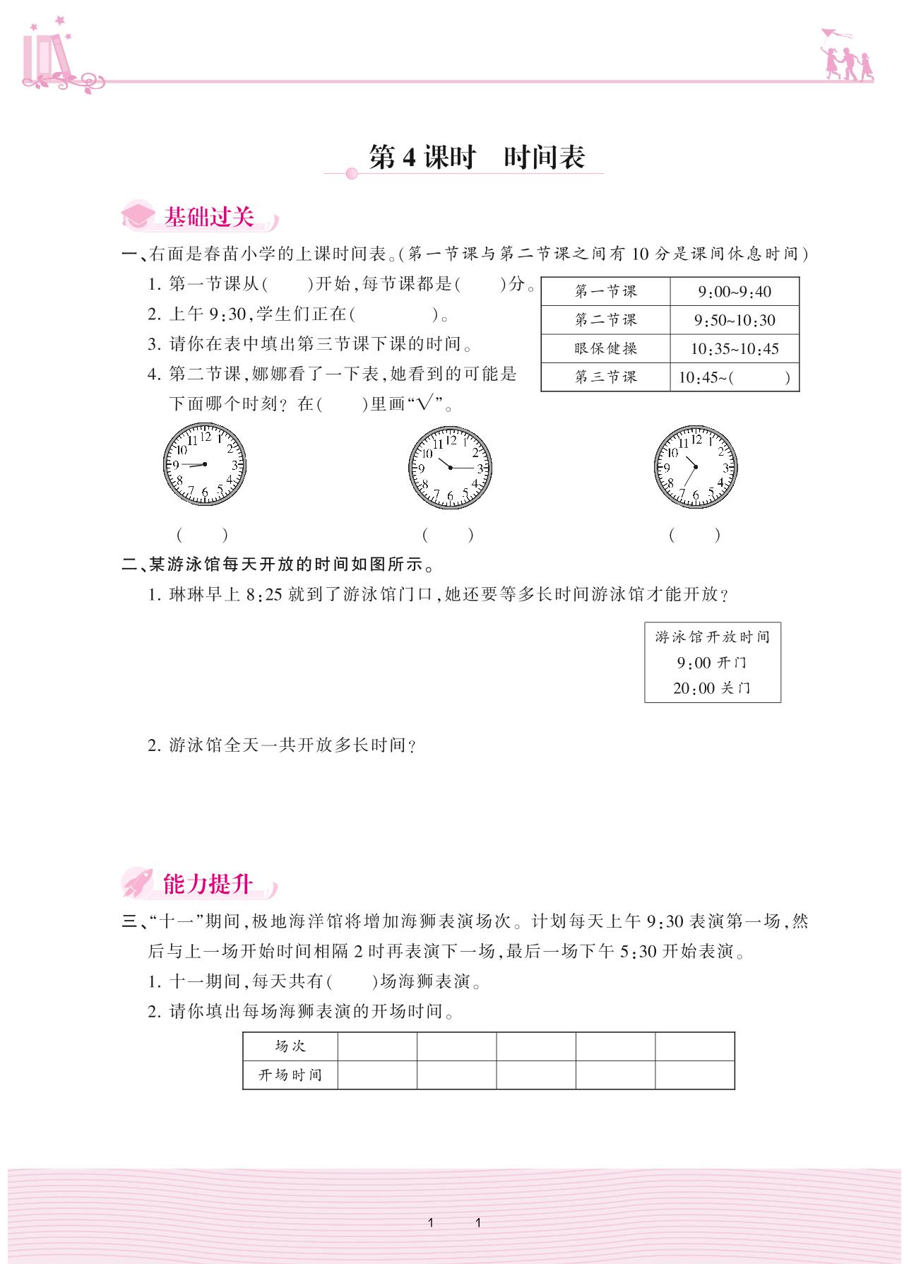 2020上册三年级数学北师版 七 年、月、日——第4课时 时间表