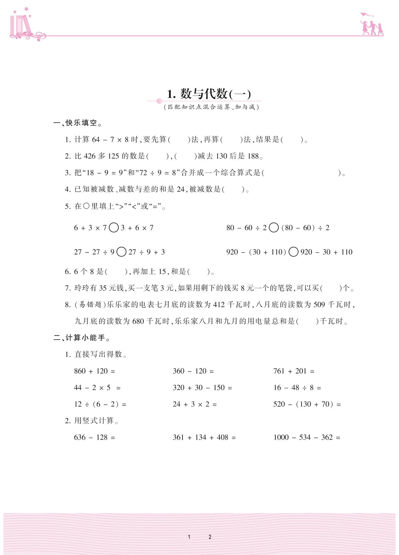 2020上册三年级数学北师版 总复习——1. 数与代数(一)