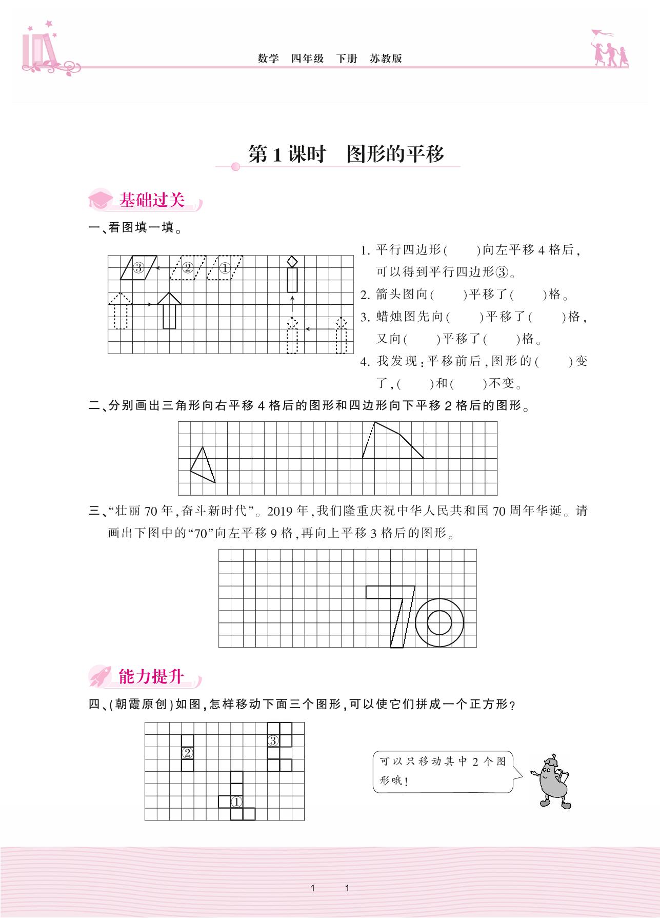 2021下册四年级数学苏教版 一 平移、旋转和轴对称——第1课时 图形的平移