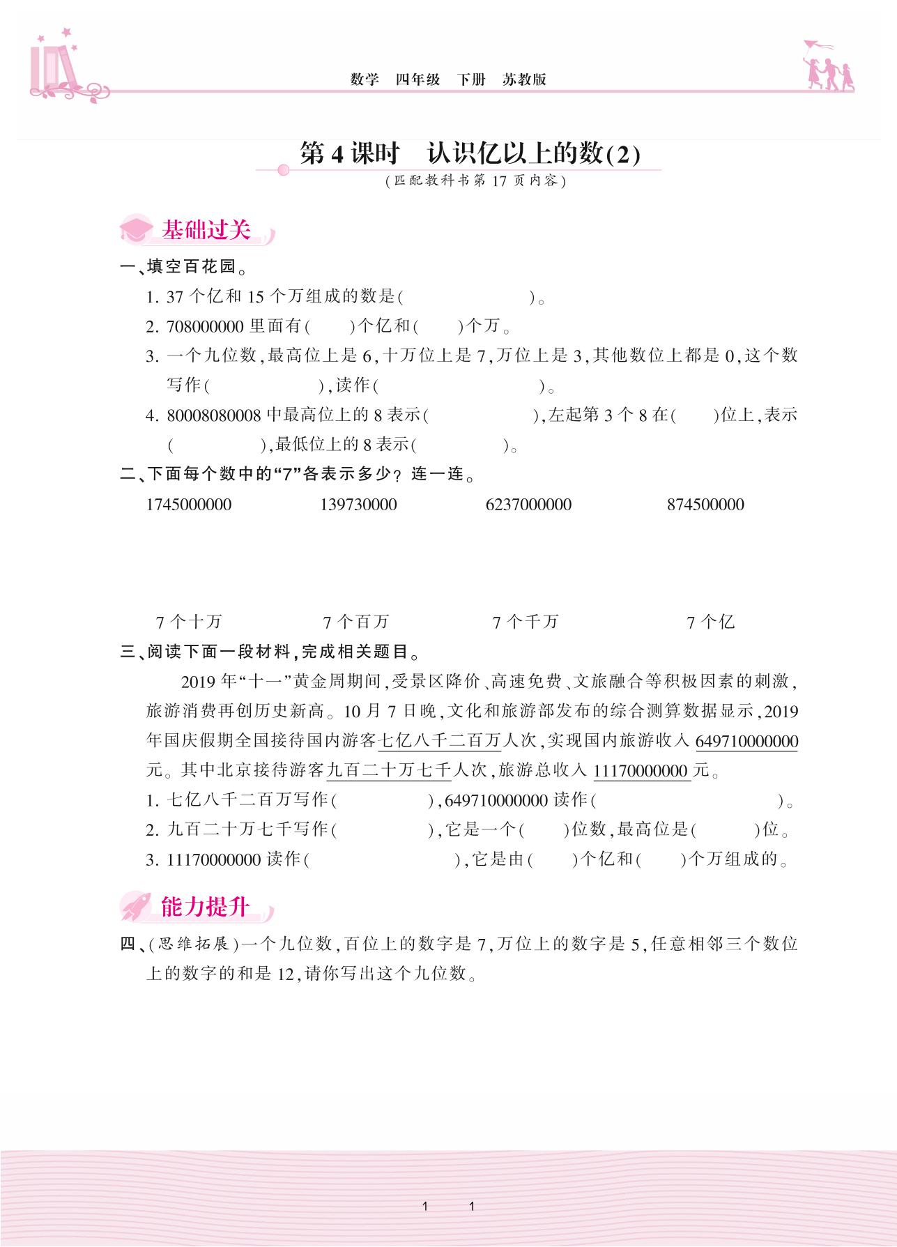2021下册四年级数学苏教版 二 认识多位数——第4课时 认识亿以上的数(2)