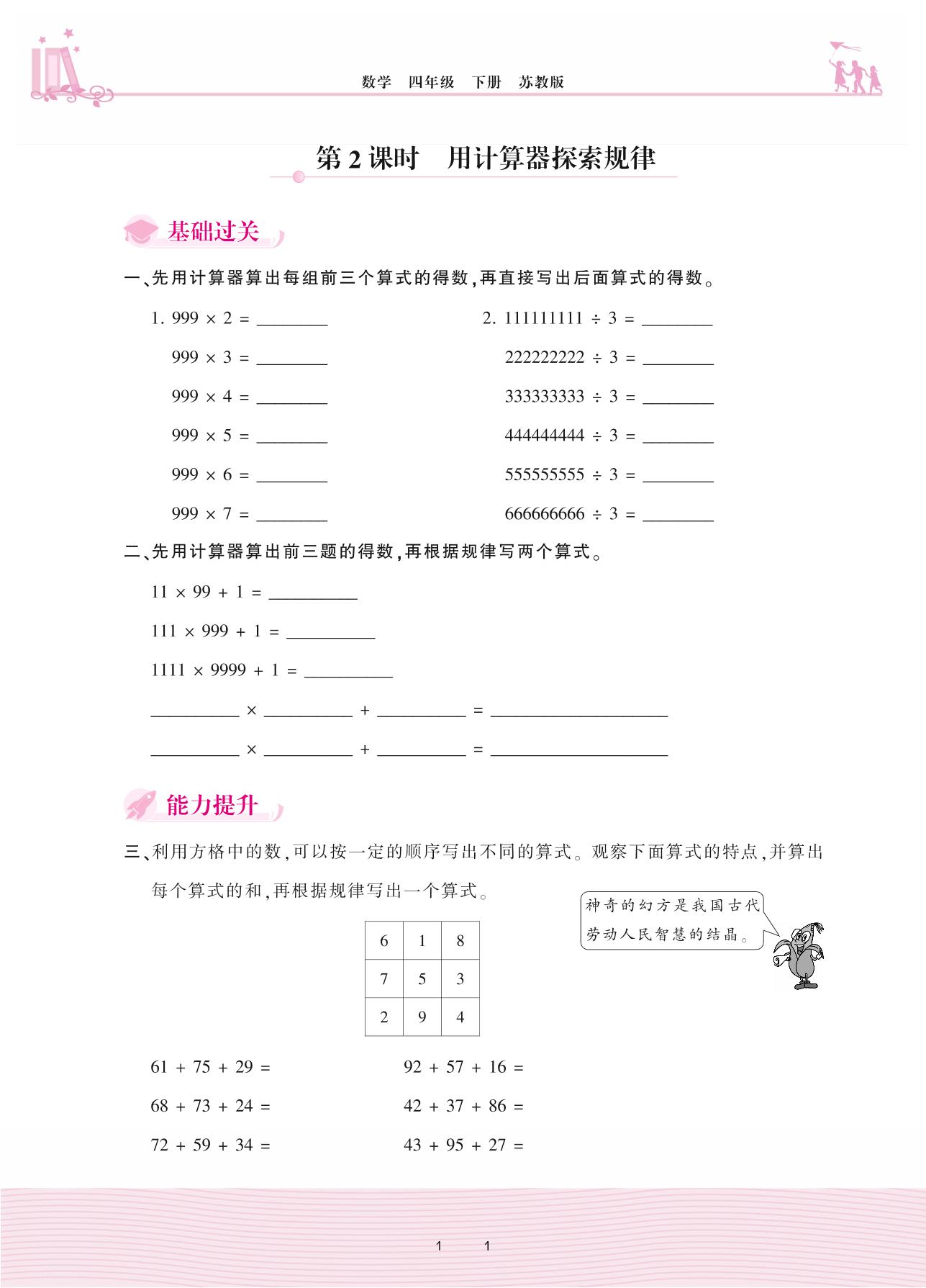 2021下册四年级数学苏教版 四 用计算器计算——第2课时 用计算器探索规律