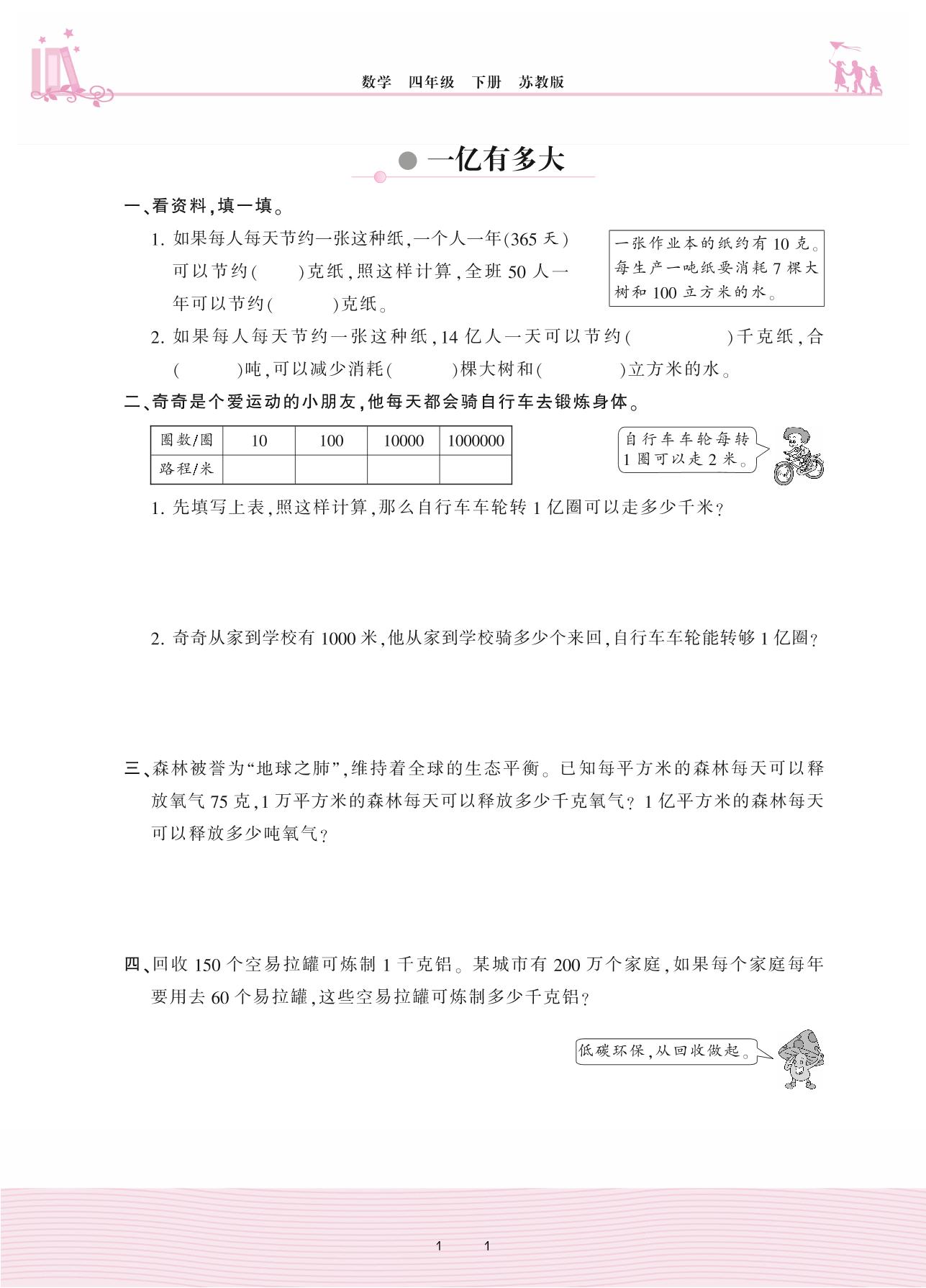 2021下册四年级数学苏教版 四 用计算器计算——一亿有多大