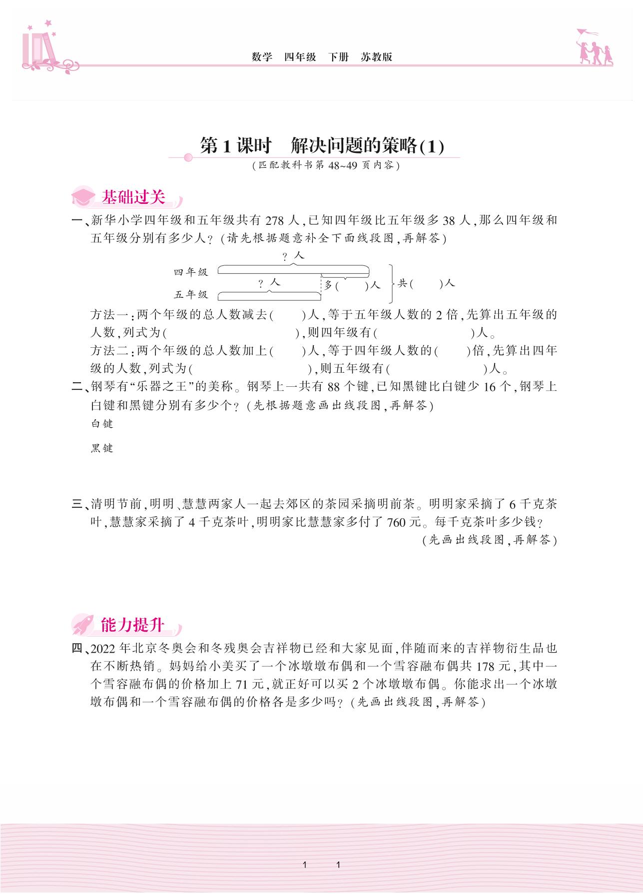 2021下册四年级数学苏教版 五 解决问题的策略——第1课时 解决问题的策略(1)
