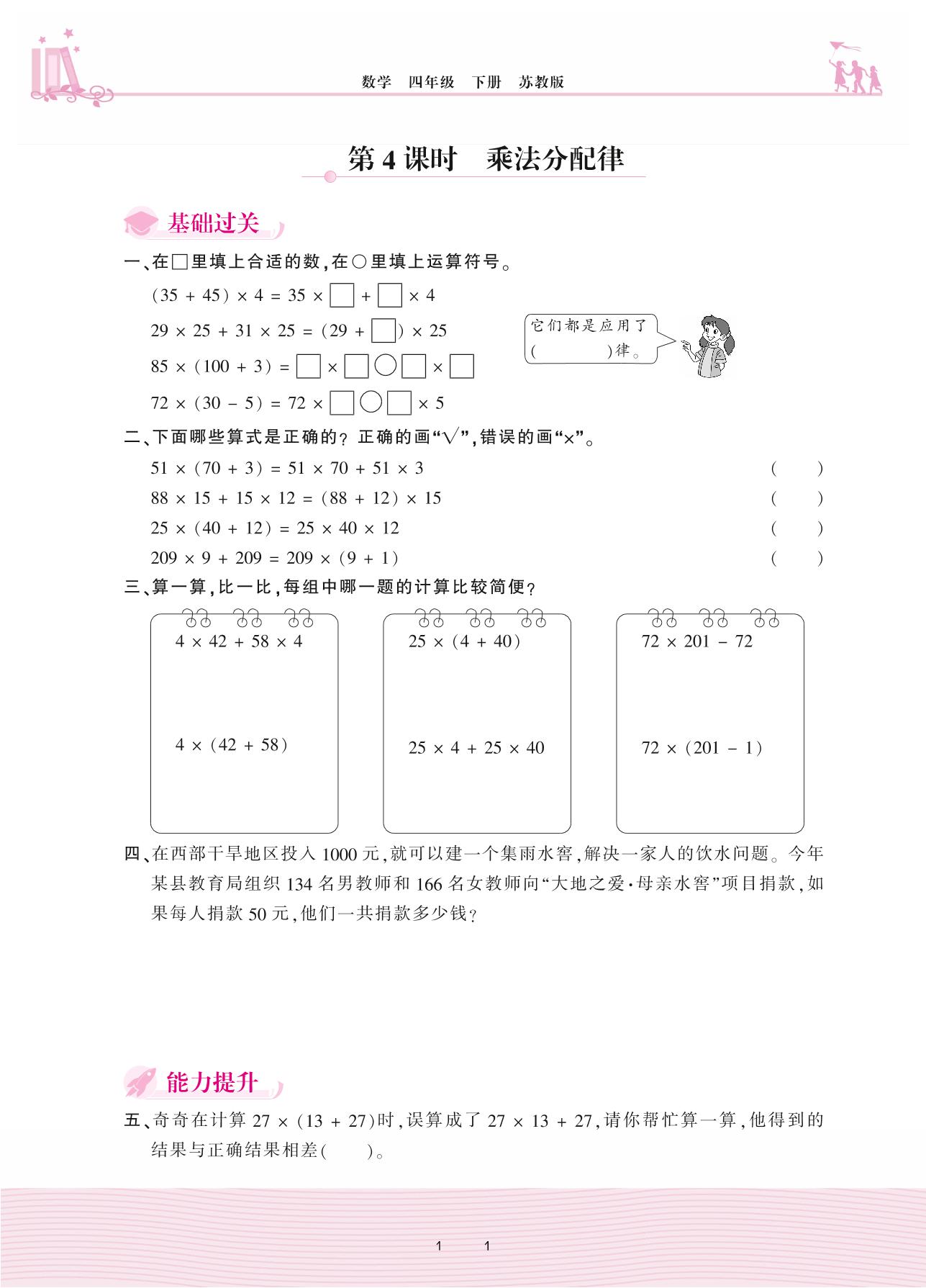 2021下册四年级数学苏教版 六 运算律——第4课时 乘法分配律