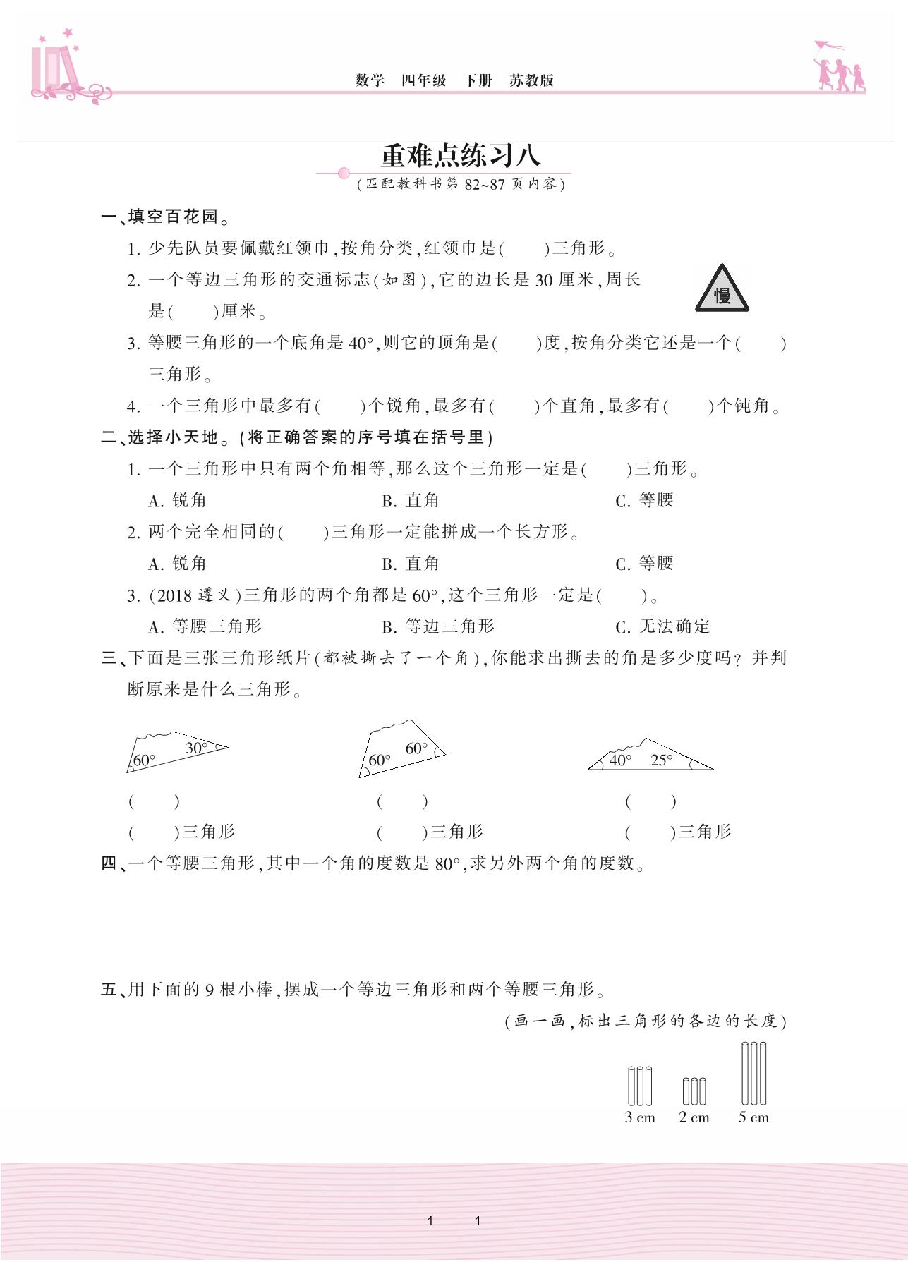 2021下册四年级数学苏教版 七 三角形、平行四边形和梯形——重难点练习八