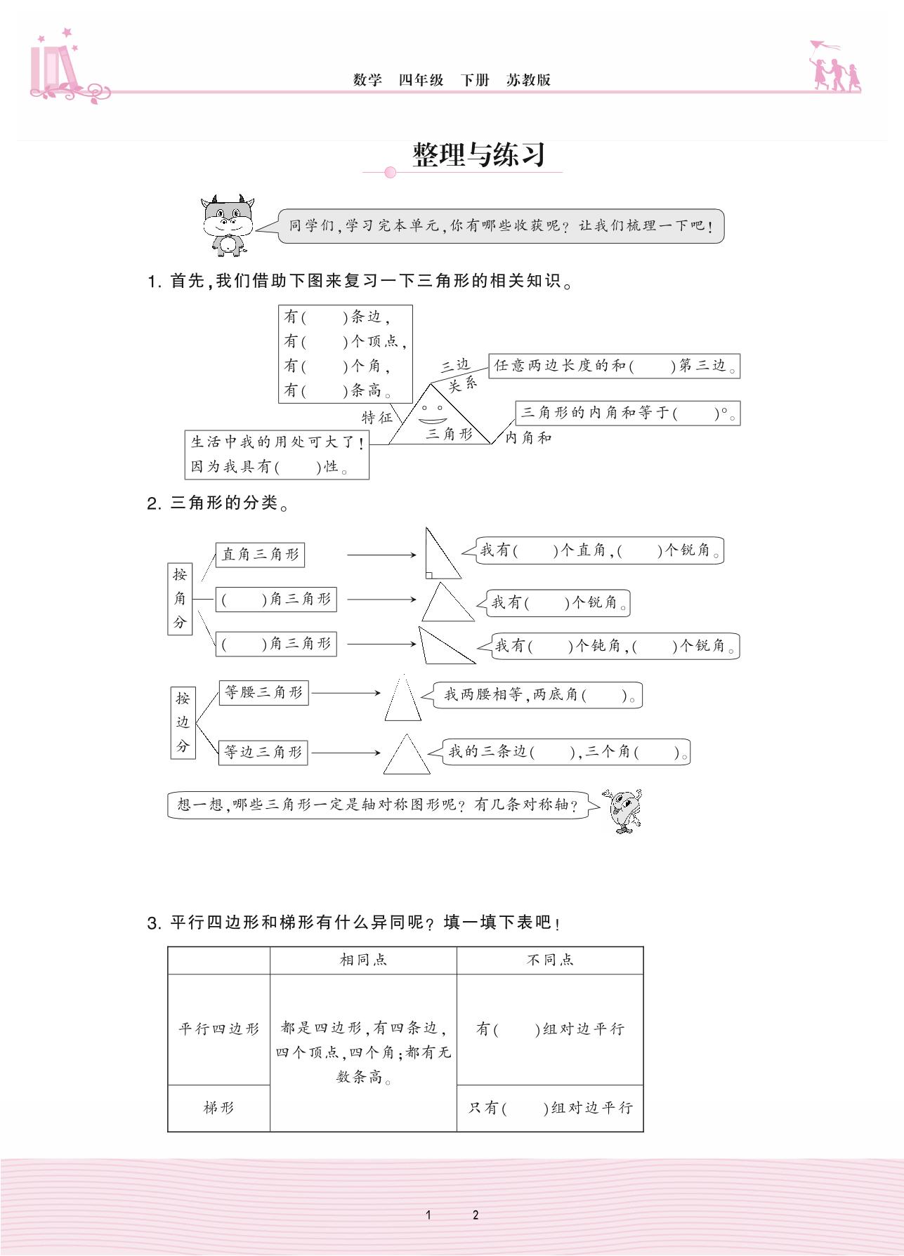 2021下册四年级数学苏教版 七 三角形、平行四边形和梯形——整理与练习