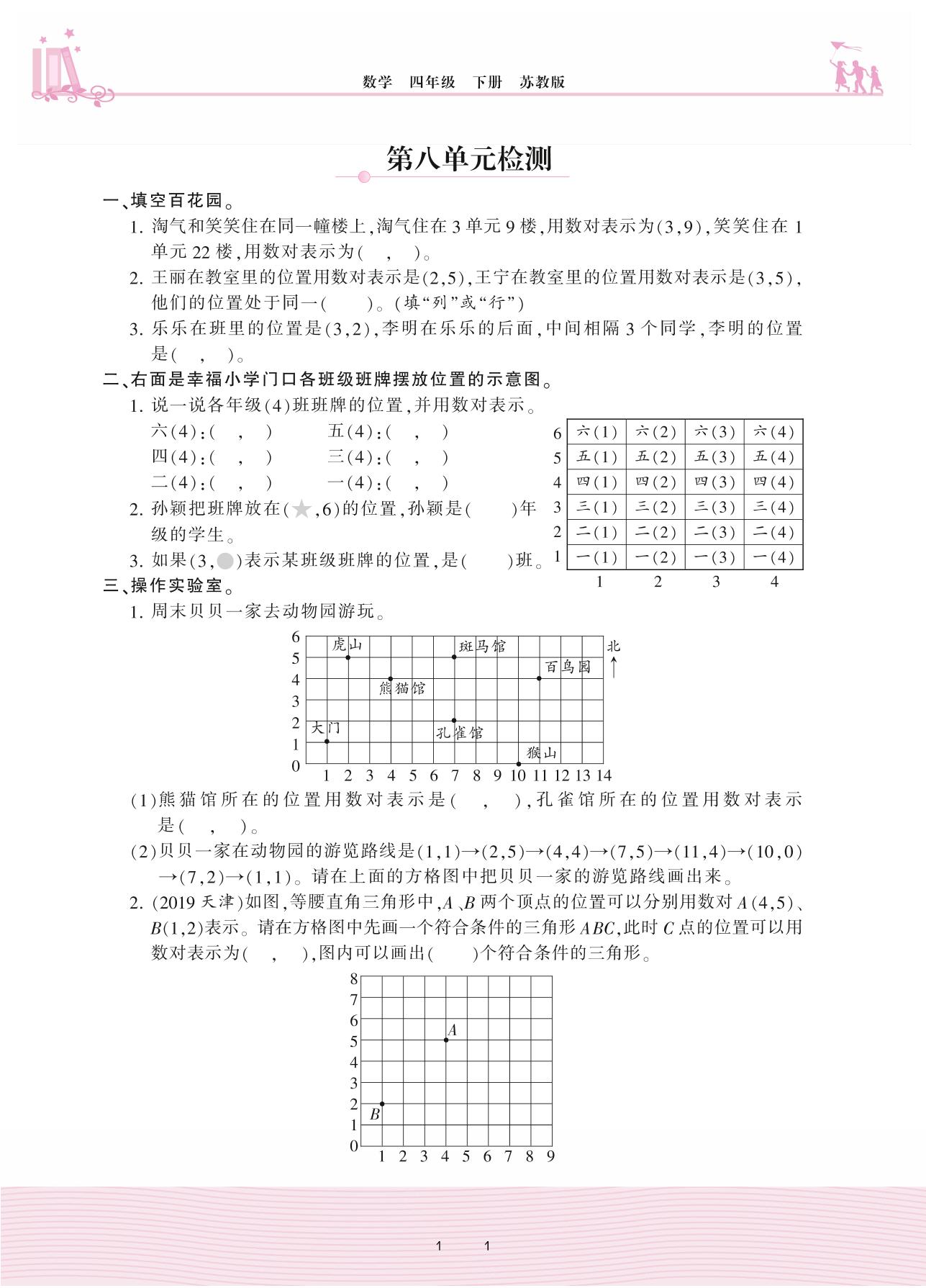 2021下册四年级数学苏教版 八 确定位置——第八单元检测