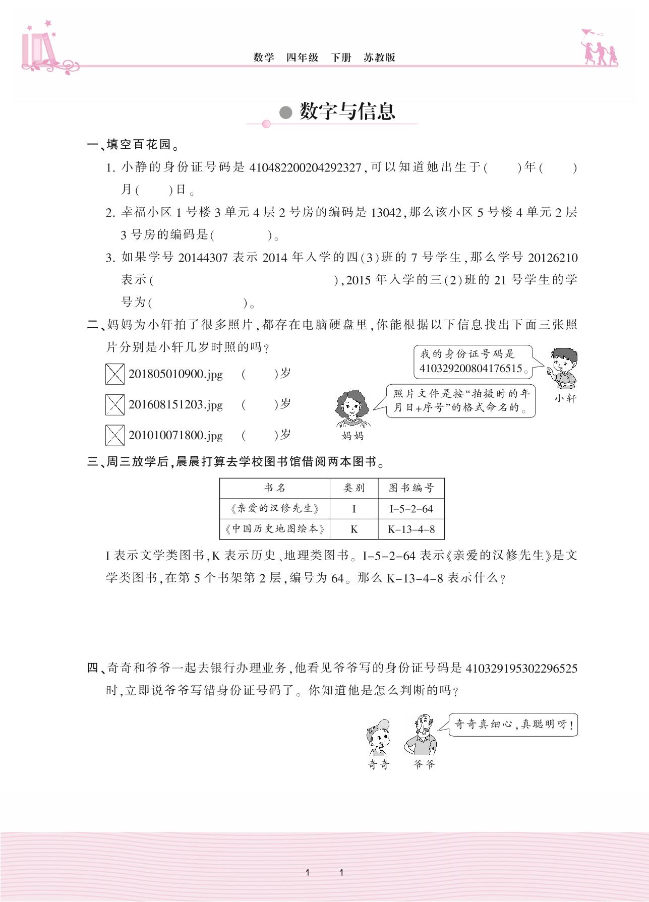 2021下册四年级数学苏教版 八 确定位置——数字与信息