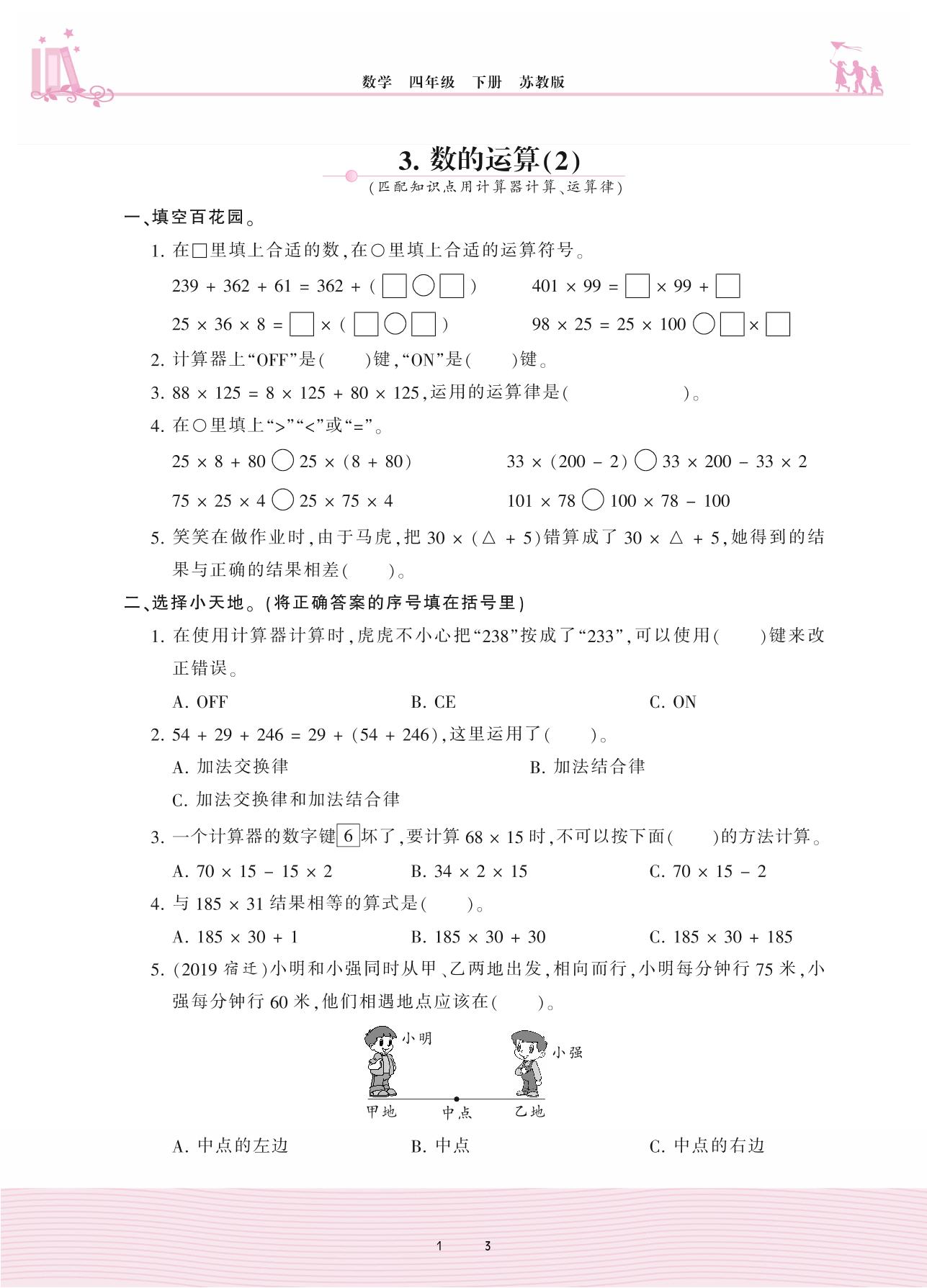 2021下册四年级数学苏教版 九 整理与复习——3. 数的运算(2)