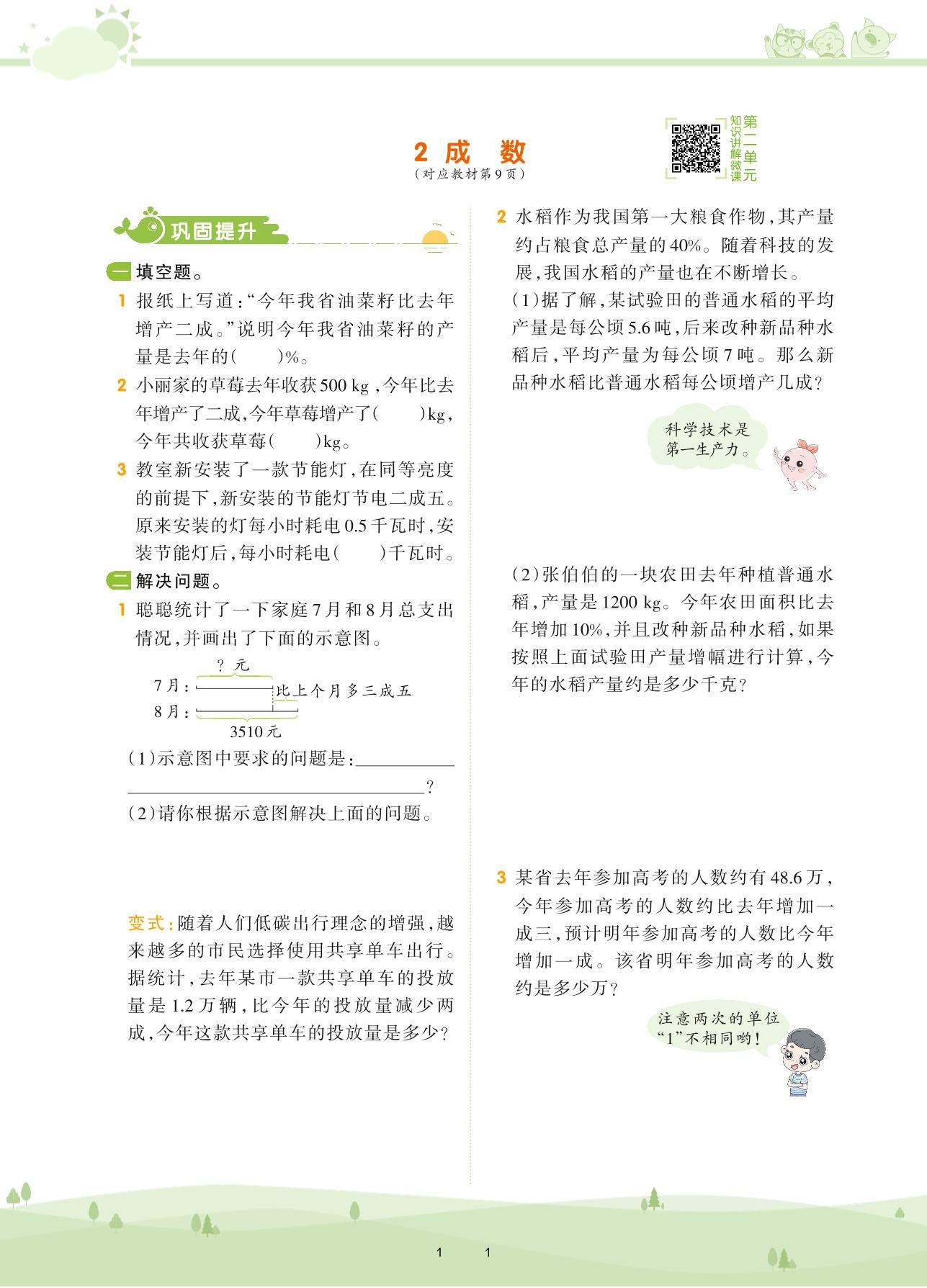 2021下册六年级数学人教版 第二单元 百分数(二)——2 成数