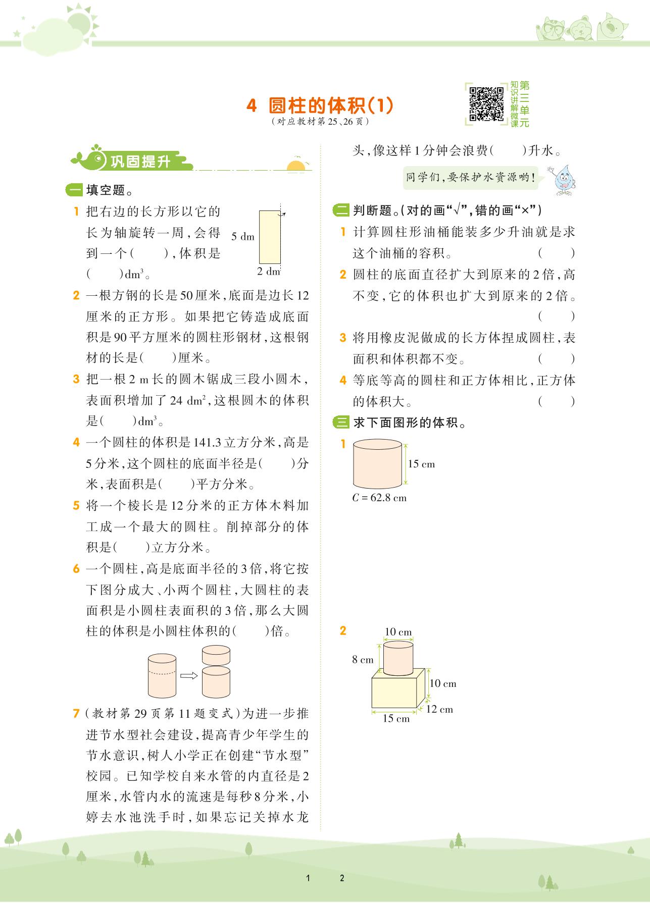 2021下册六年级数学人教版 第三单元 圆柱与圆锥——4 圆柱的体积(1)