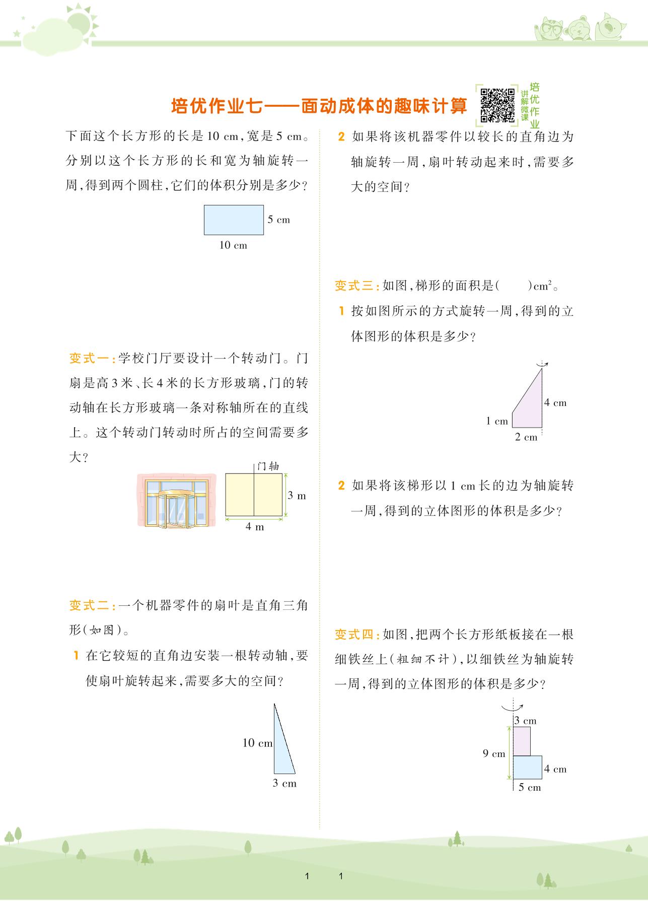 2021下册六年级数学人教版 第三单元 圆柱与圆锥——培优作业七 面动成体的趣味计算