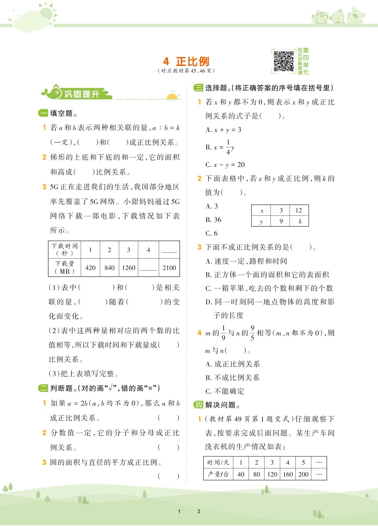2021下册六年级数学人教版 第四单元 比例——4 正比例