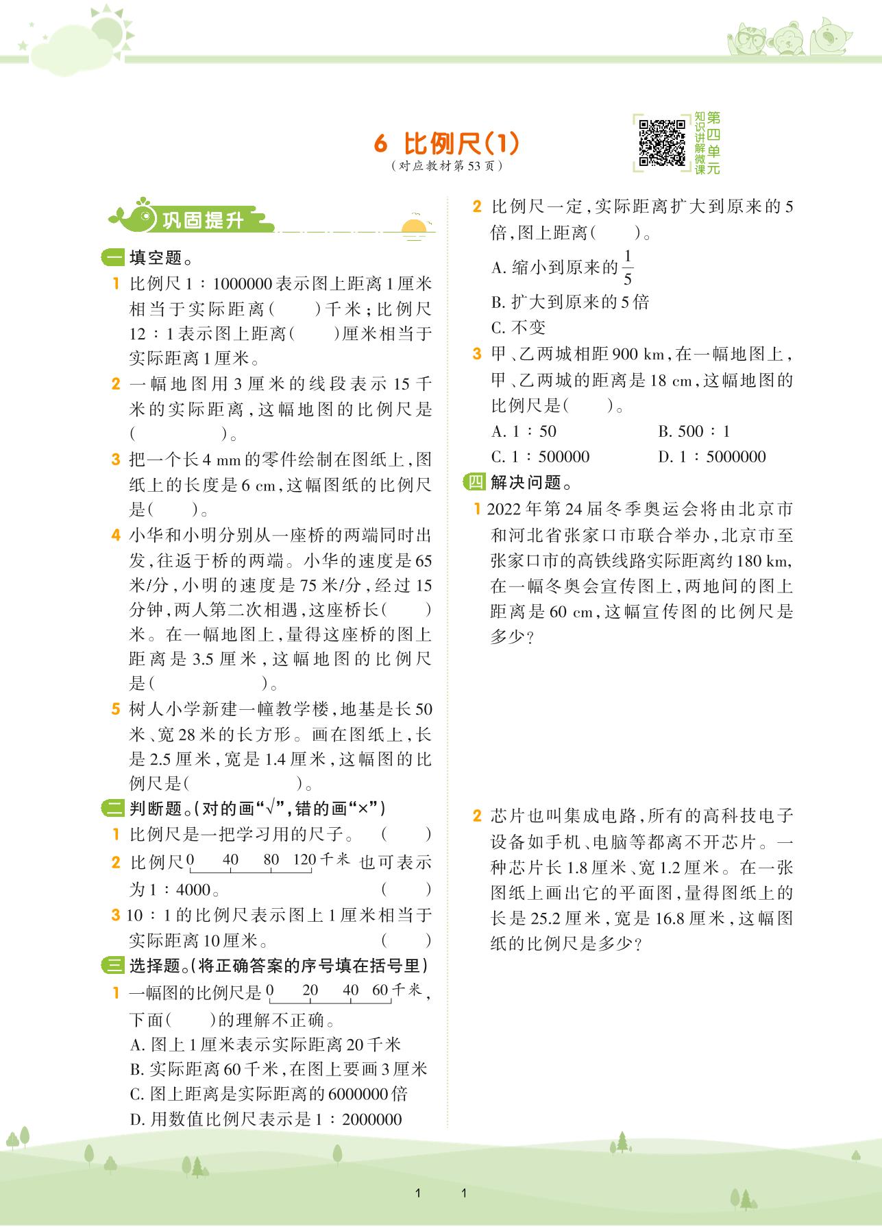 2021下册六年级数学人教版 第四单元 比例——6 比例尺(1)