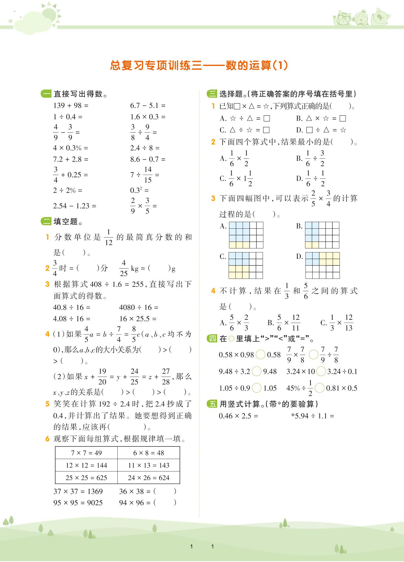 2021下册六年级数学人教版 第六单元 整理和复习 数与代数——总复习专项训练三 数的运算(1)