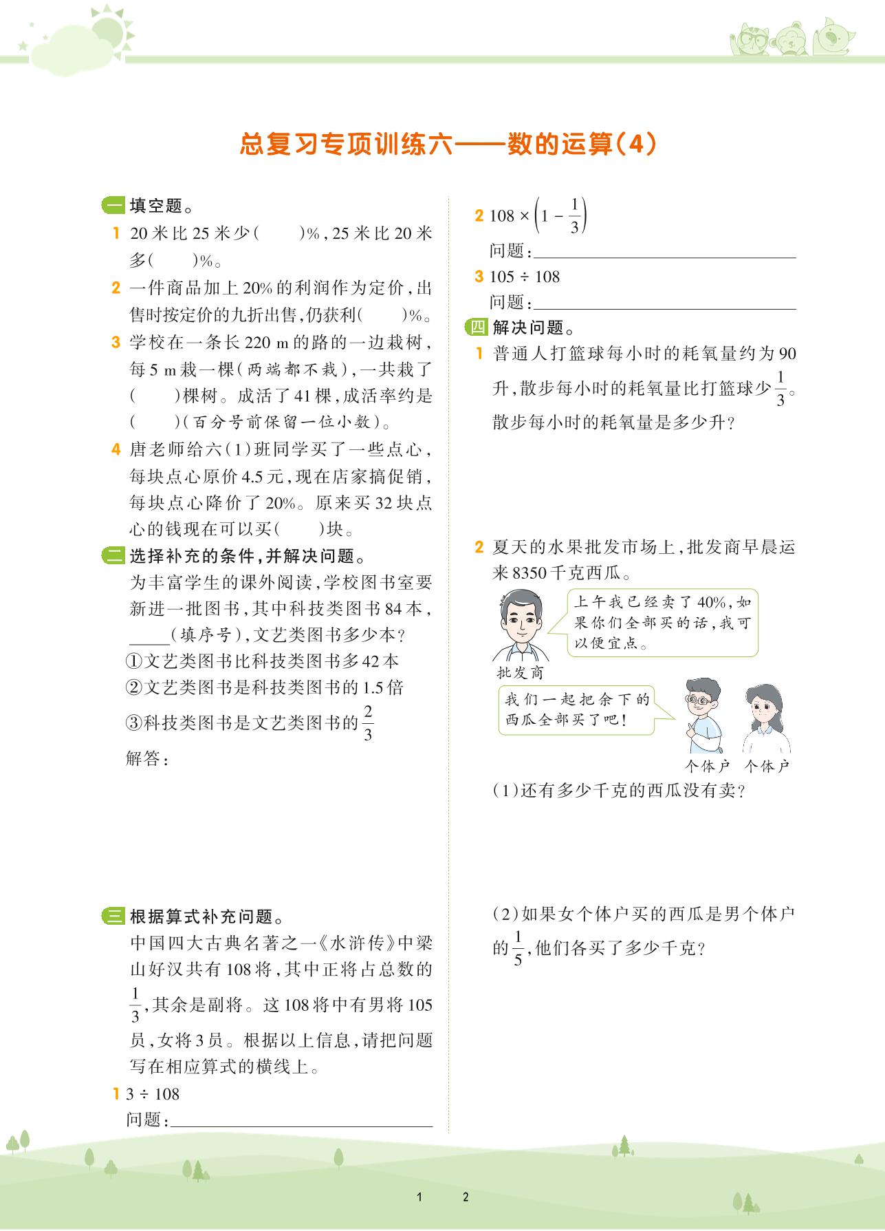 2021下册六年级数学人教版 第六单元 整理和复习 数与代数——总复习专项训练六 数的运算(4)