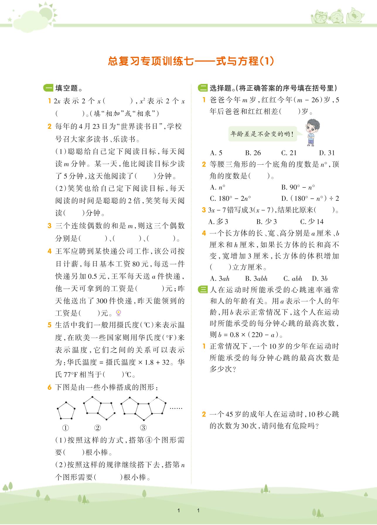 2021下册六年级数学人教版 第六单元 整理和复习 数与代数——总复习专项训练七 式与方程(1)