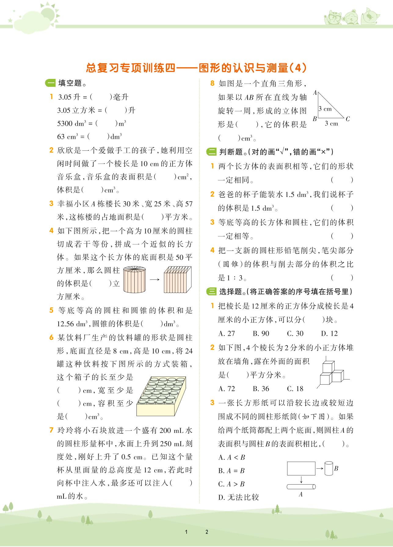 2021下册六年级数学人教版 第六单元 整理和复习 图形与几何——总复习专项训练四 图形的认识与测量(4)