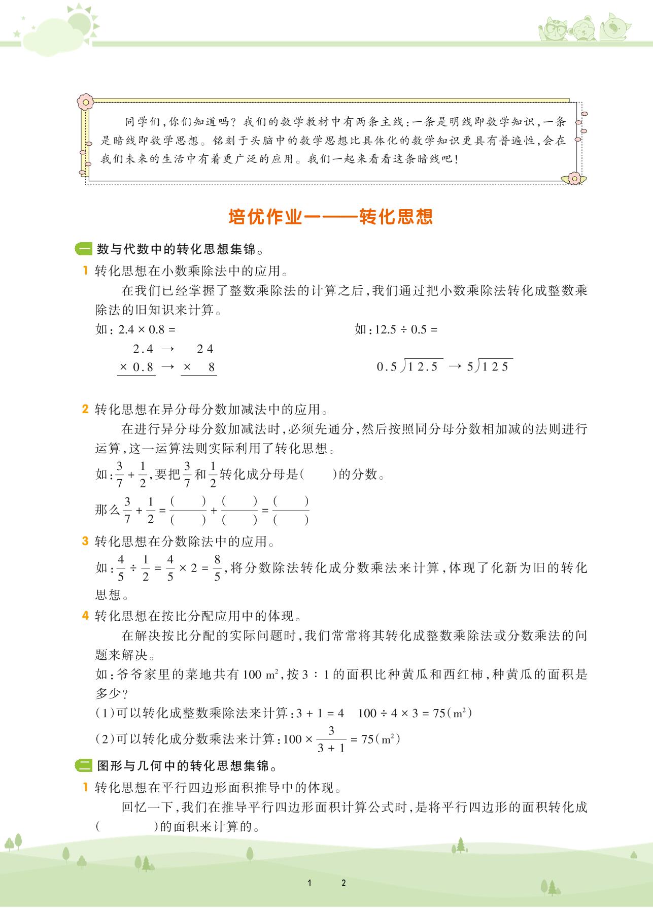 2021下册六年级数学人教版 第六单元 整理和复习 图形与几何——培优作业一 转化思想