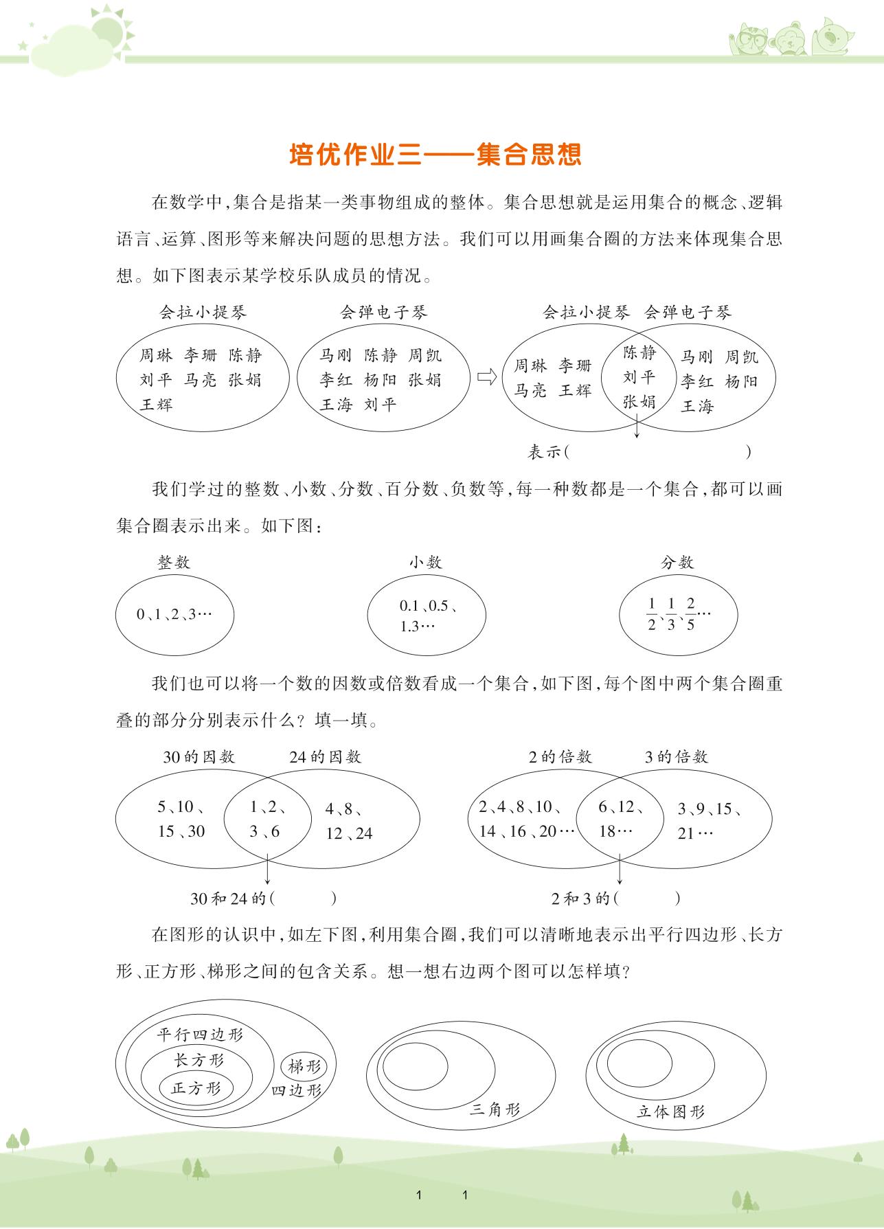 2021下册六年级数学人教版 第六单元 整理和复习 图形与几何——培优作业三 集合思想