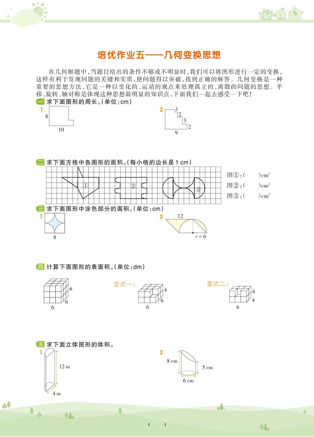 2021下册六年级数学人教版 第六单元 整理和复习 图形与几何——培优作业五 几何变换思想