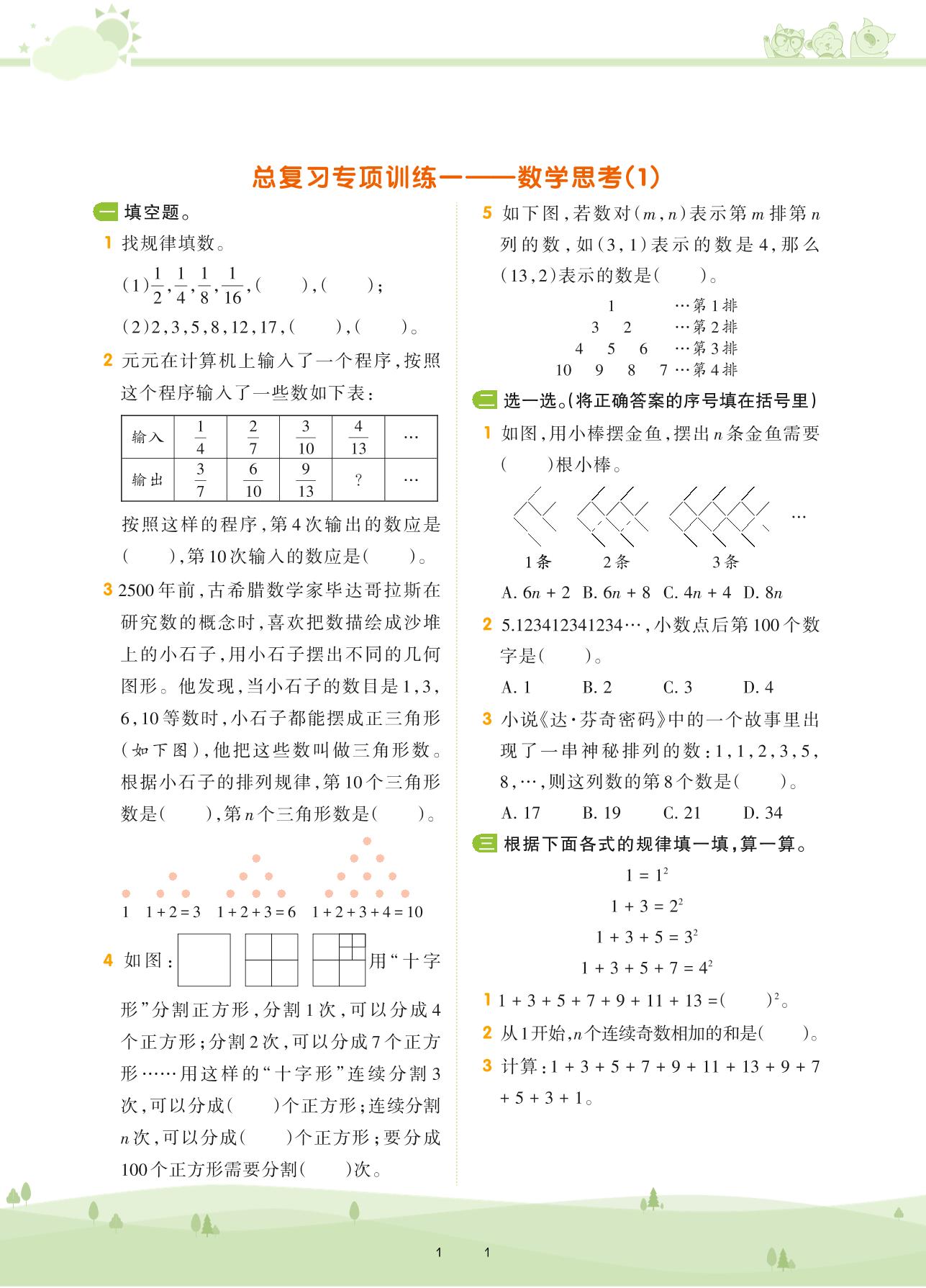 2021下册六年级数学人教版 第六单元 整理和复习 数学思考——总复习专项训练一 数学思考(1)
