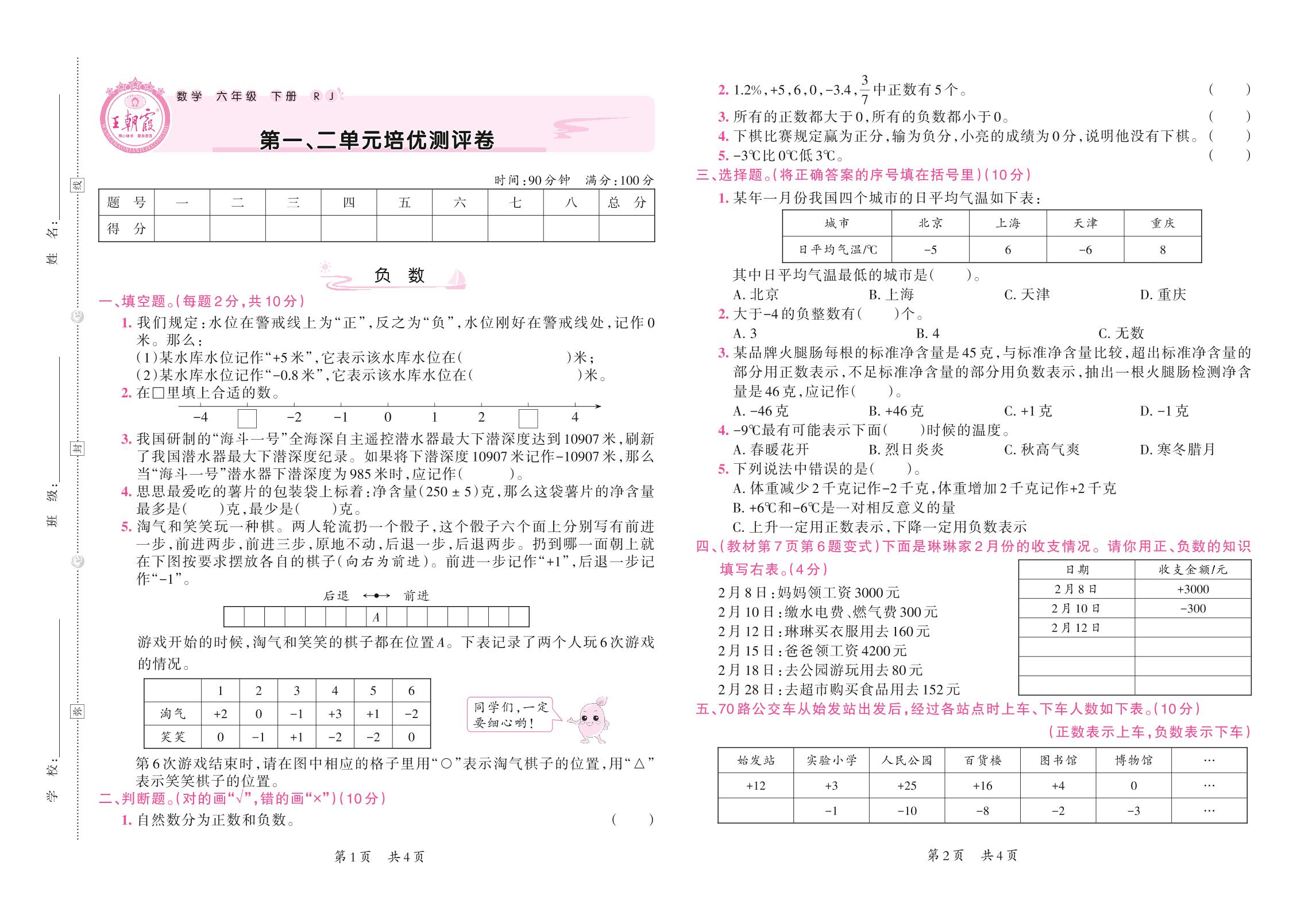 2021下册六年级数学人教版 第一、二单元培优测评卷