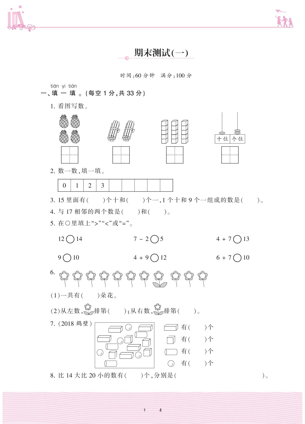 2020上册一年级数学北师版 期末测试(一)
