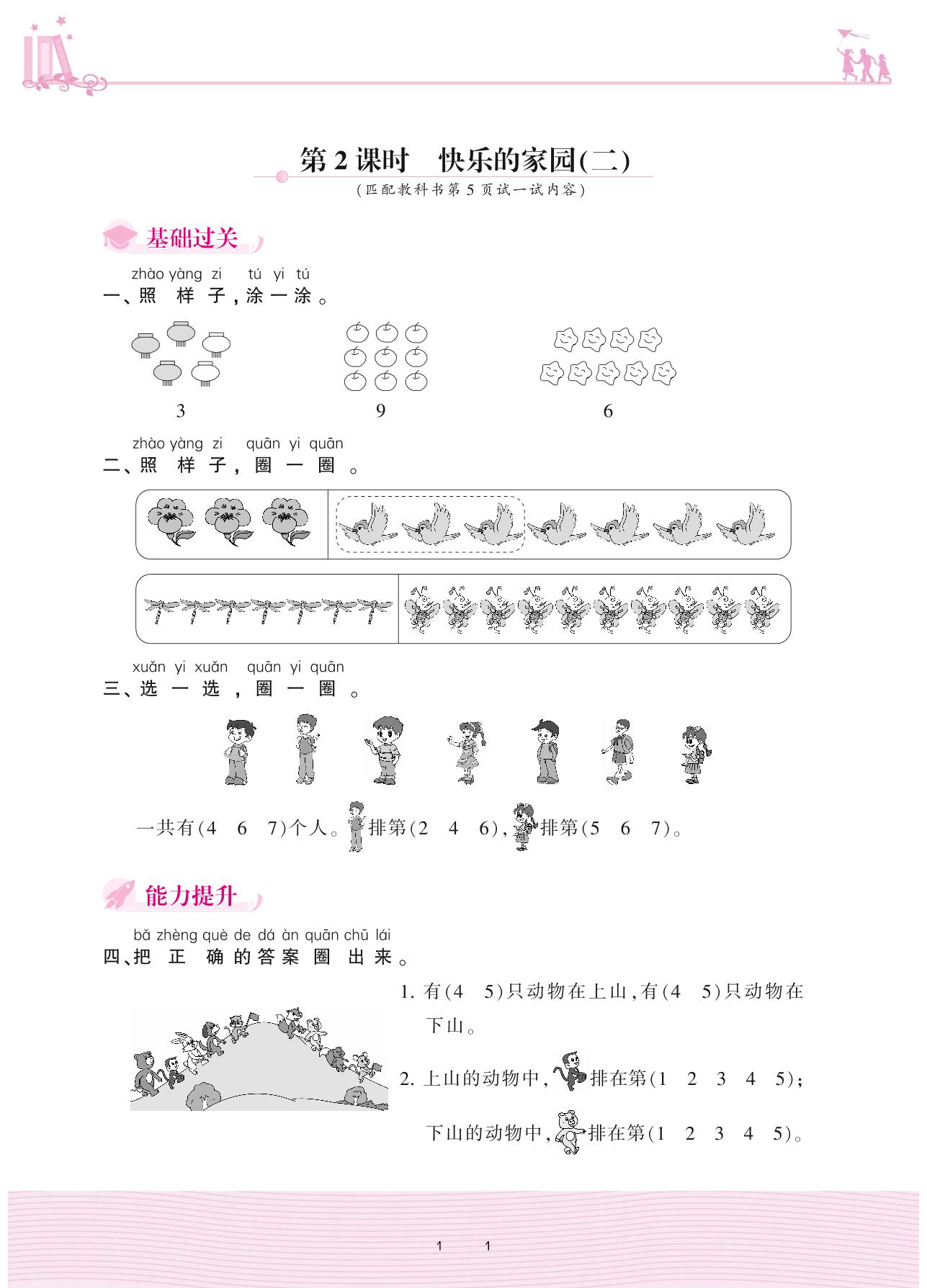 2020上册一年级数学北师版 一 生活中的数——第2课时 快乐的家园(二)