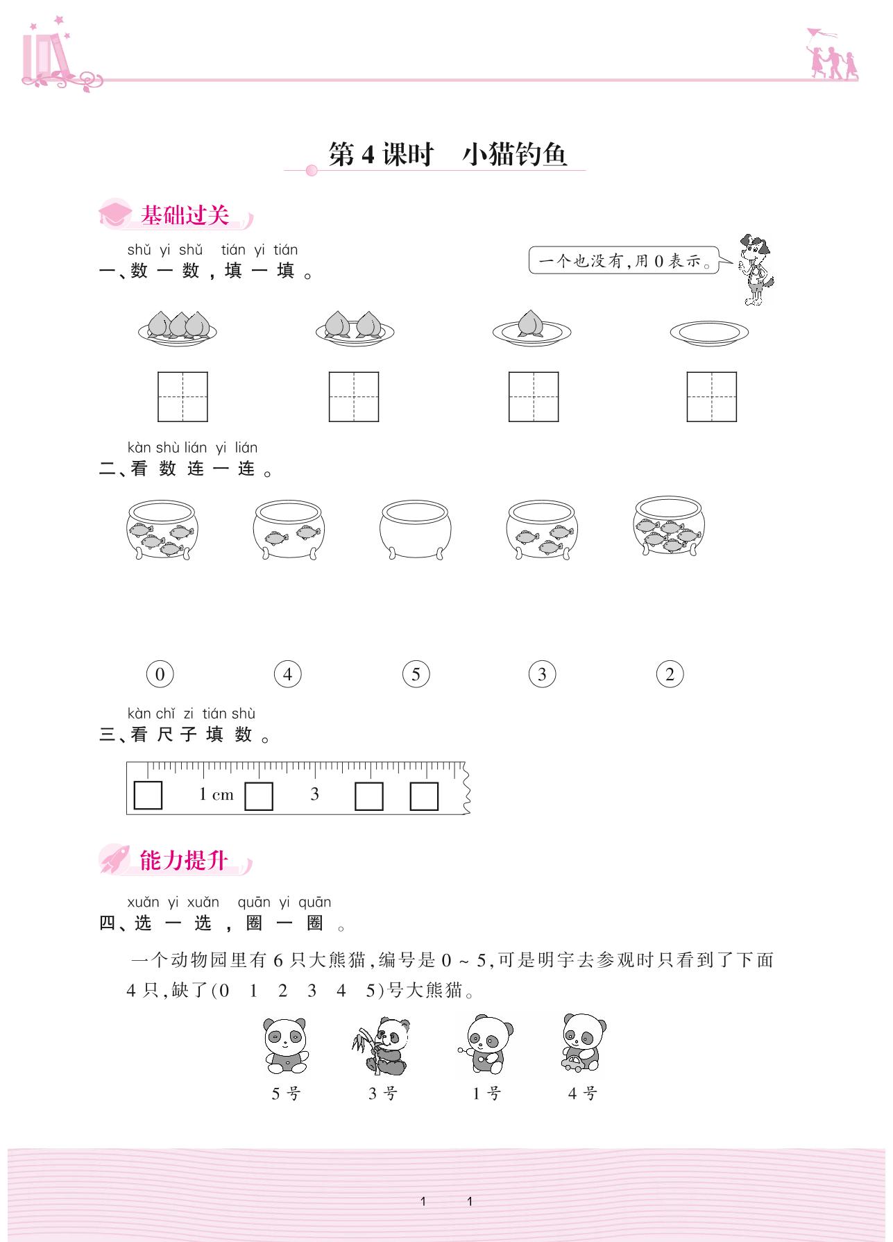 2020上册一年级数学北师版 一 生活中的数——第4课时 小猫钓鱼