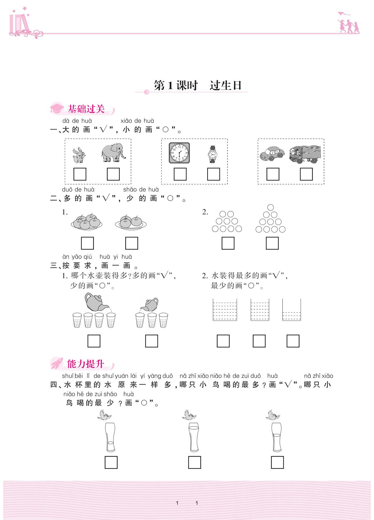 2020上册一年级数学北师版 二 比较——第1课时 过生日