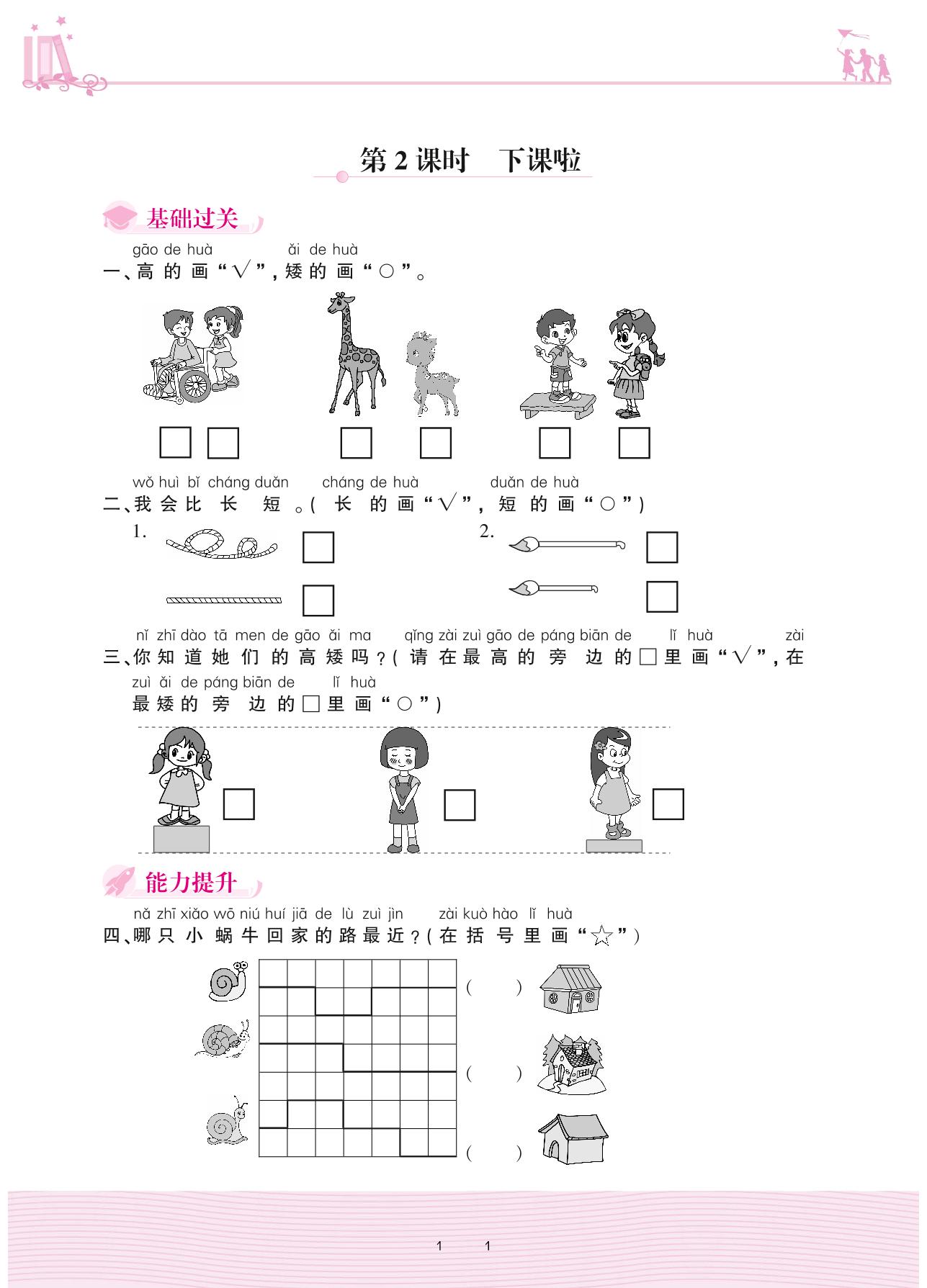 2020上册一年级数学北师版 二 比较——第2课时 下课啦