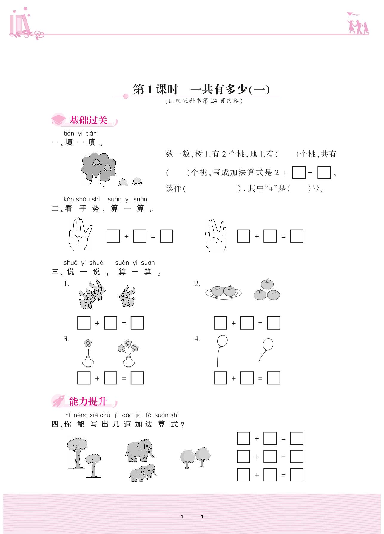 2020上册一年级数学北师版 三 加与减(一)——第1课时 一共有多少(一)