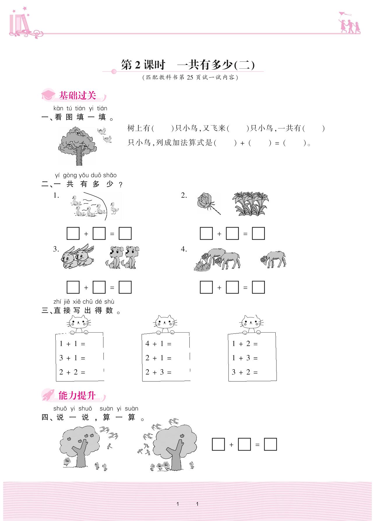 2020上册一年级数学北师版 三 加与减(一)——第2课时 一共有多少(二)