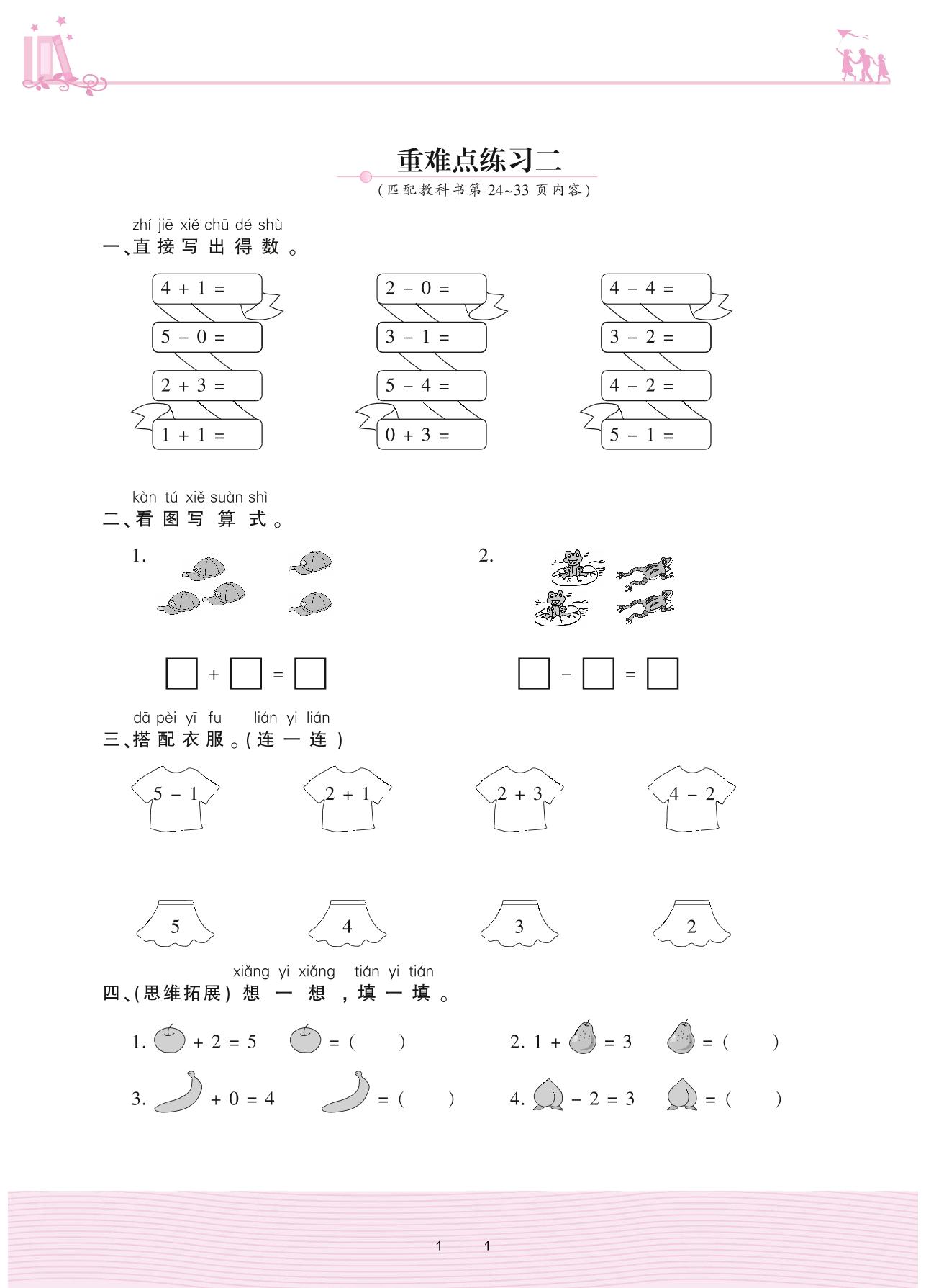 2020上册一年级数学北师版 三 加与减(一)——重难点练习二