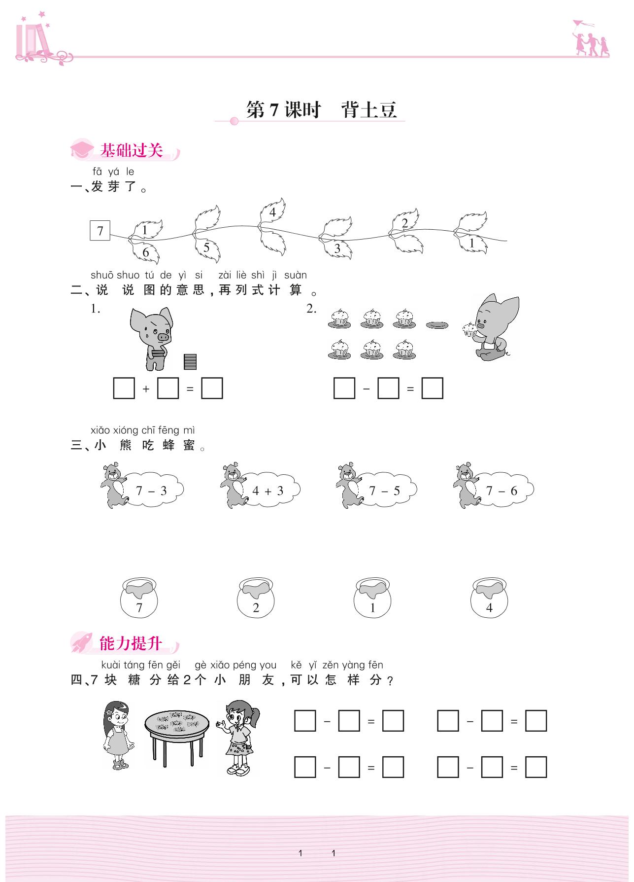 2020上册一年级数学北师版 三 加与减(一)——第7课时 背土豆