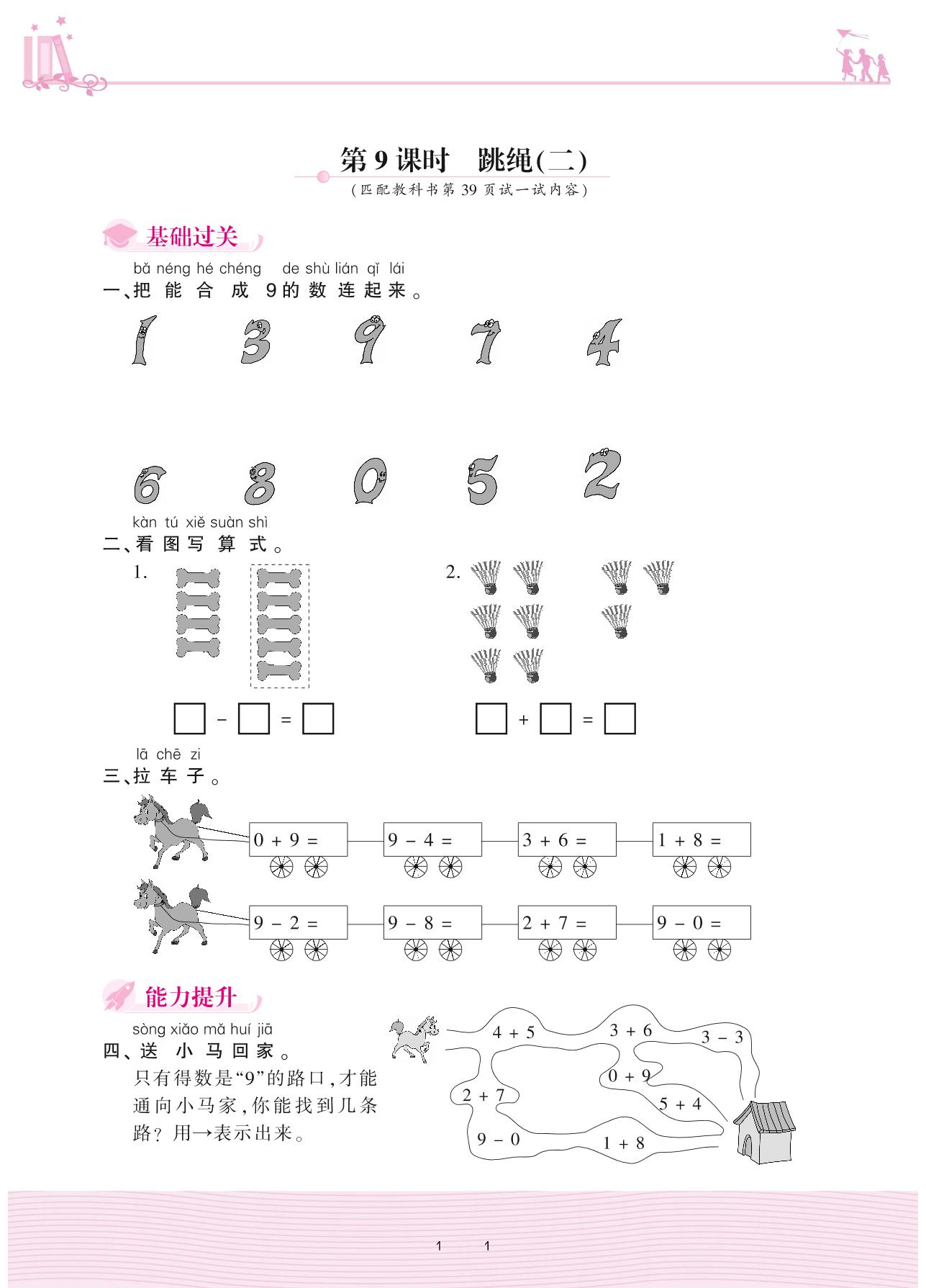 2020上册一年级数学北师版 三 加与减(一)——第9课时 跳绳(二)