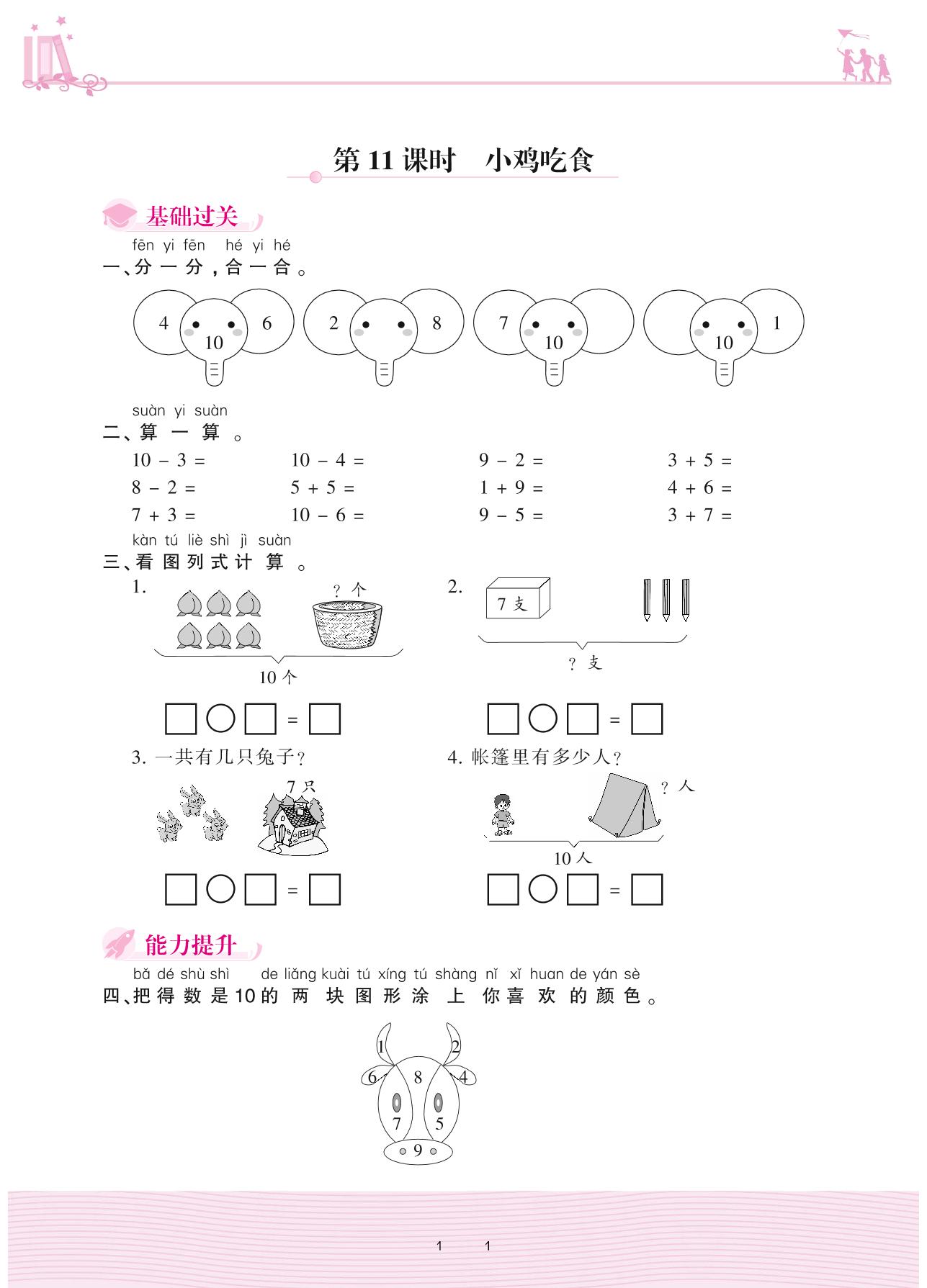 2020上册一年级数学北师版 三 加与减(一)——第11课时 小鸡吃食