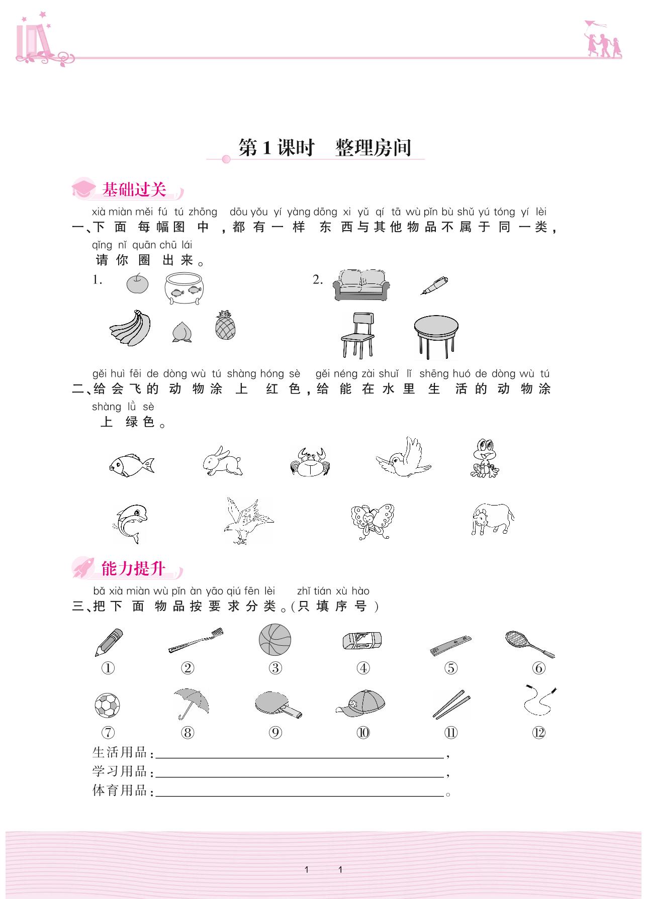 2020上册一年级数学北师版 四 分类——第1课时 整理房间