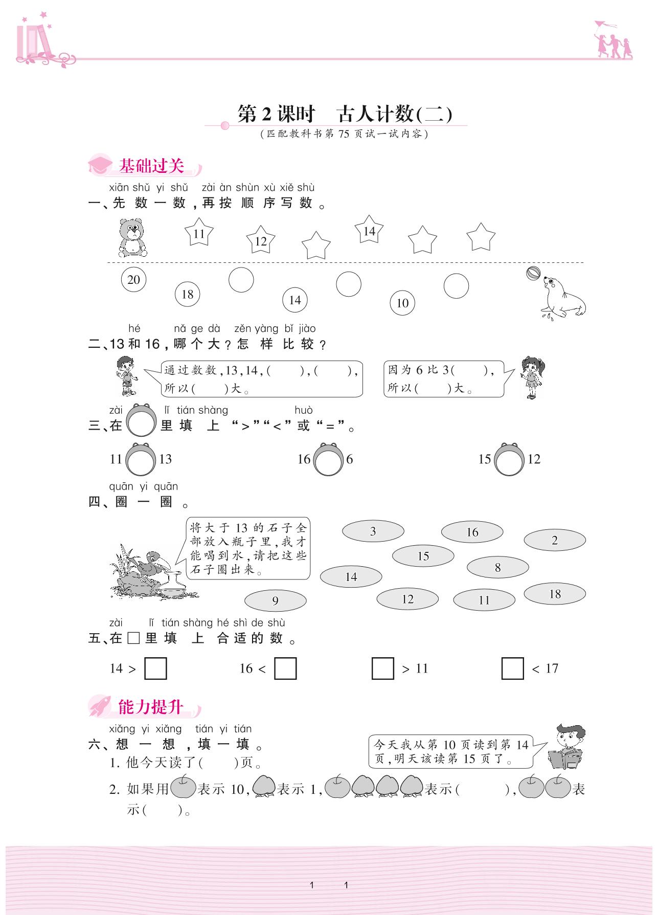 2020上册一年级数学北师版 七 加与减(二)——第2课时 古人计数(二)