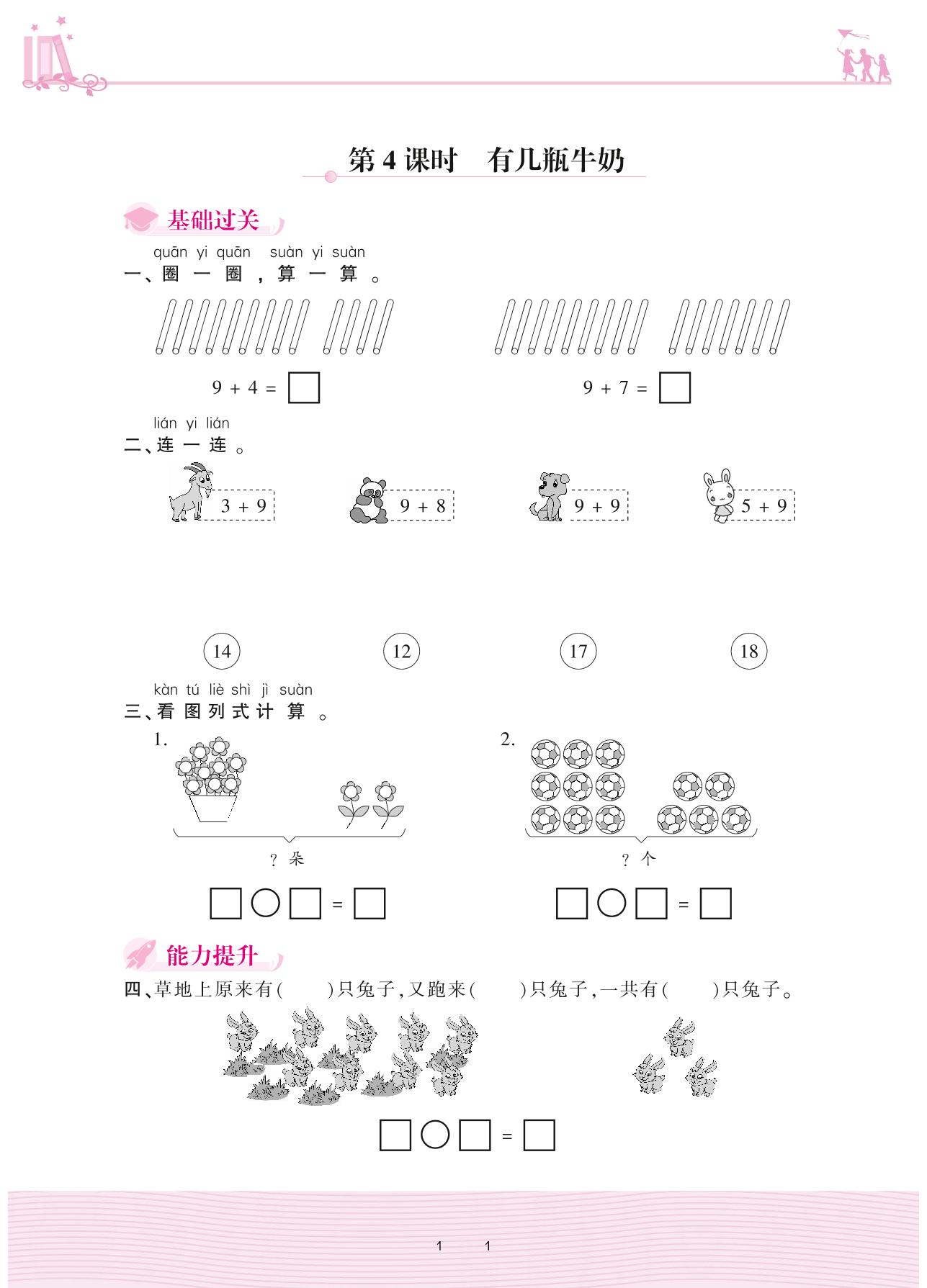 2020上册一年级数学北师版 七 加与减(二)——第4课时 有几瓶牛奶