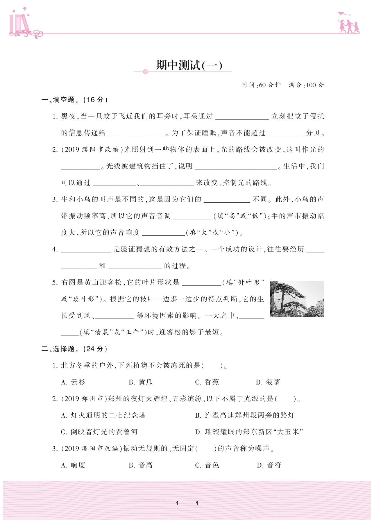 2020上册六年级科学大象版 期中测试(一)